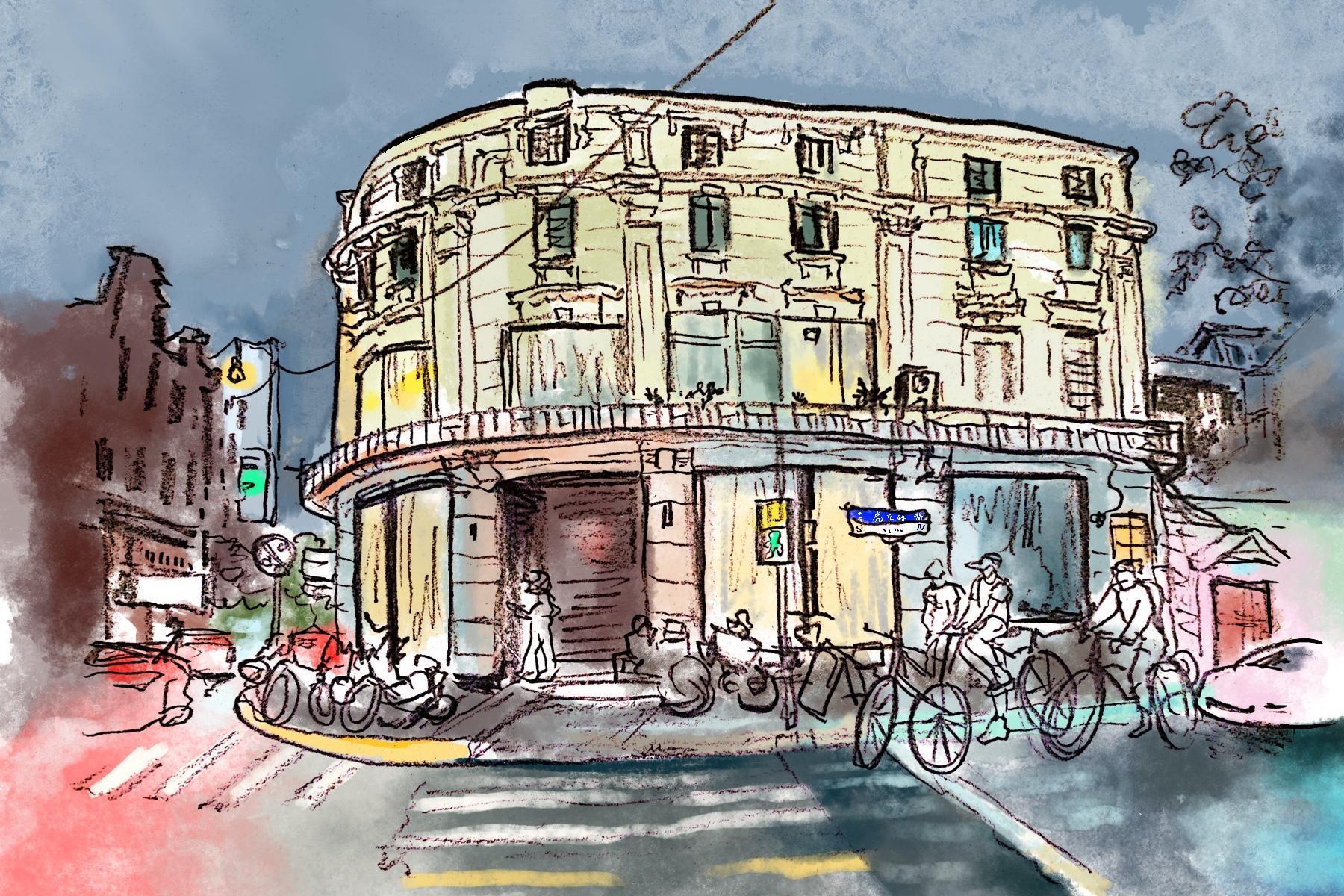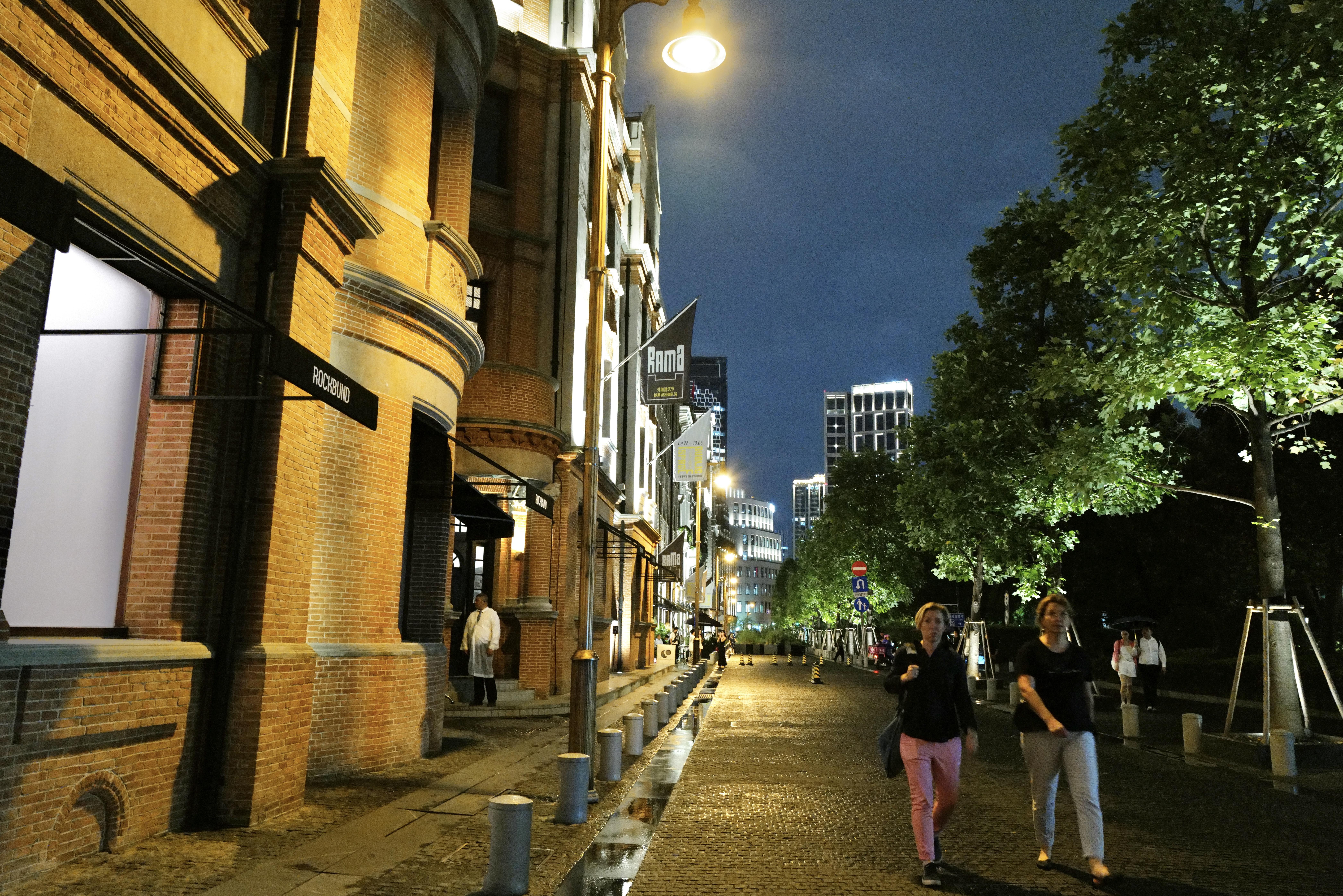 在外滩源的宽敞小道上,夜幕下,就着细雨散步,惬意又享受。两边的老建筑在路灯和夜色的晕染下,慵懒迷人。