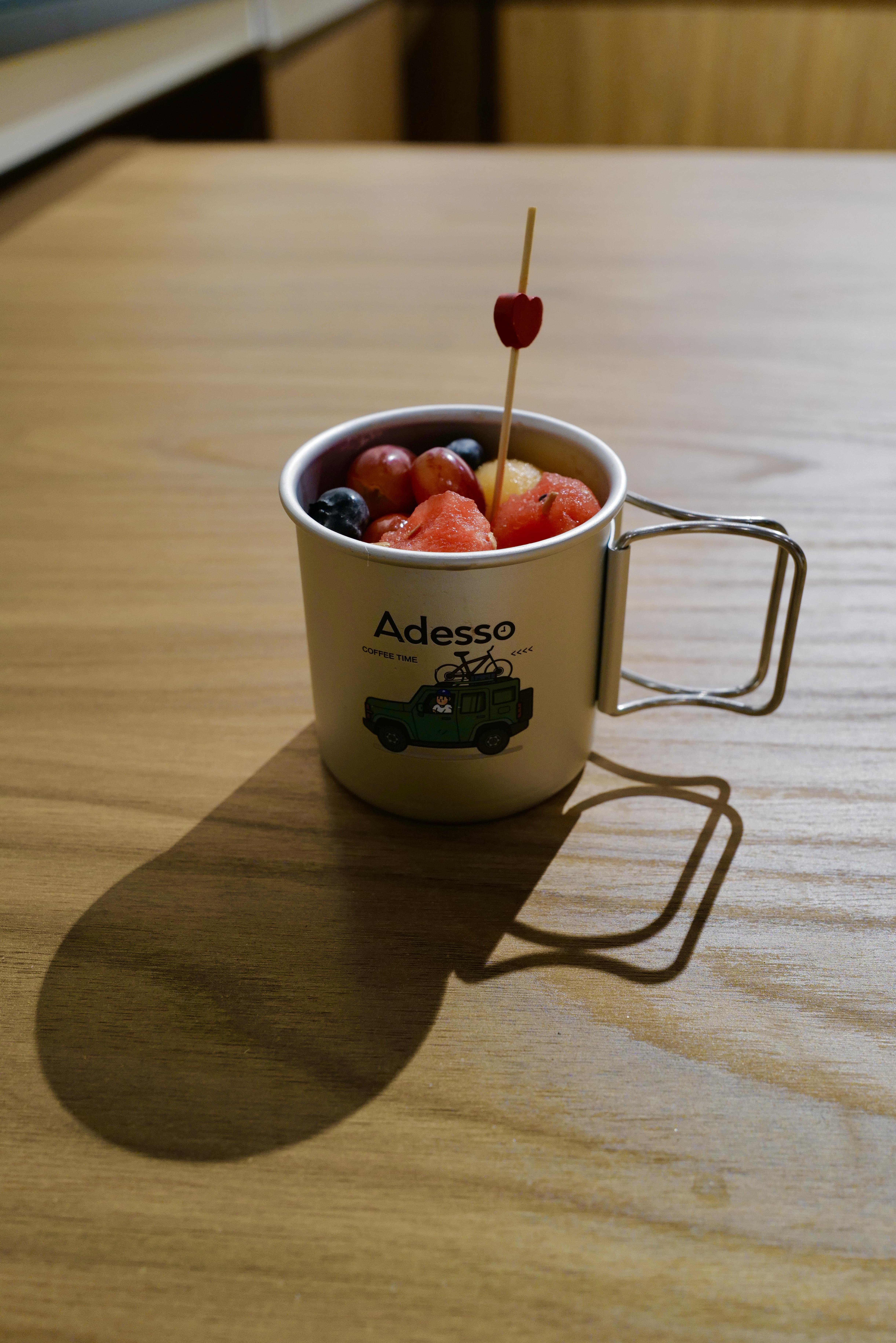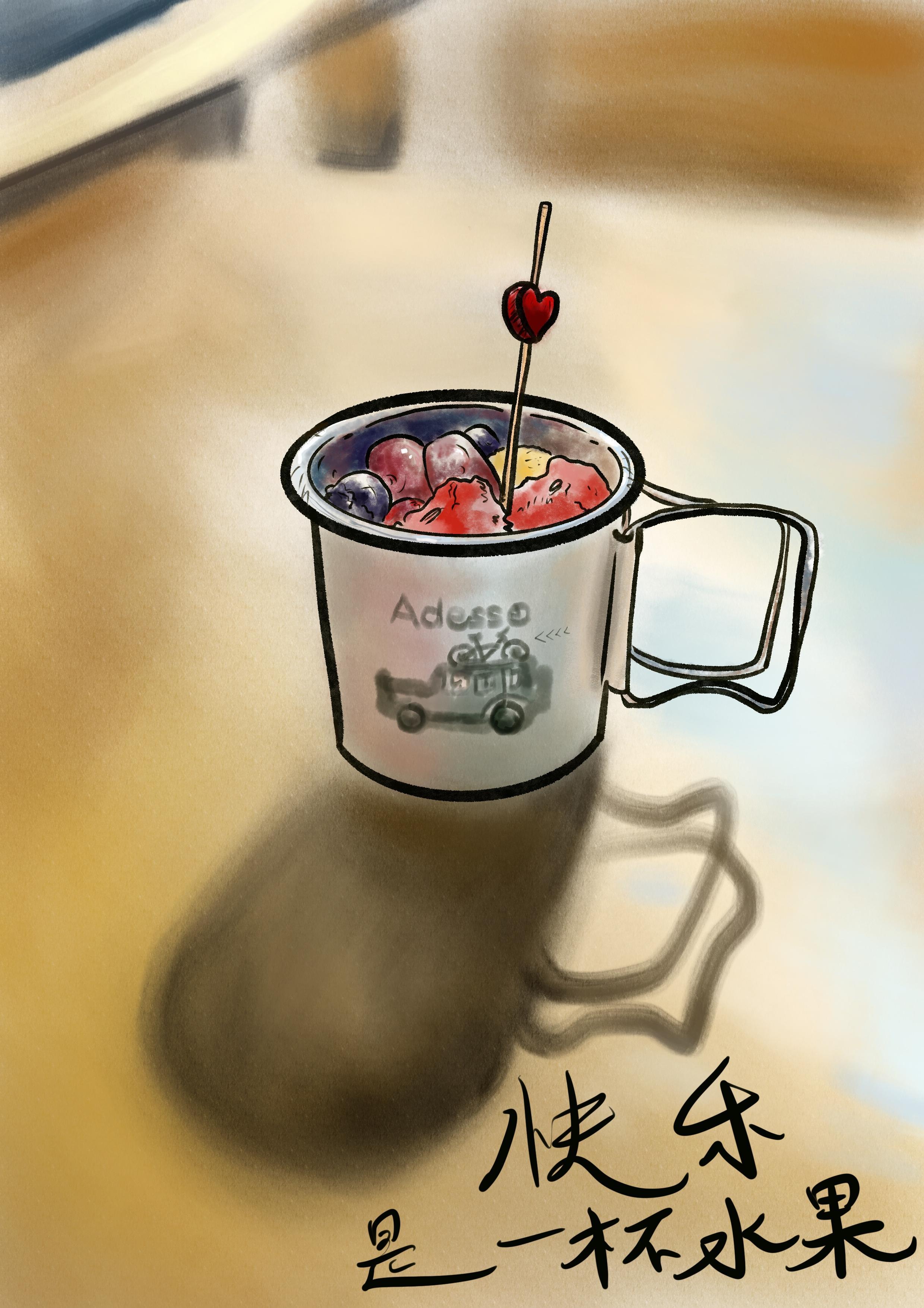 来一杯缤纷的水果色拉,小小的爱心也代表着小店带给食客们的暖意和温情。