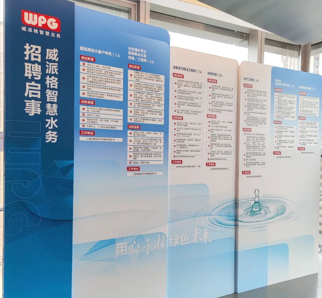 本期展览作为嘉定区高层次人才创新创业项目主题展系列活动之一,邀请上海市威派格智慧水务有限公司走进嘉定人才港,以“水、人才、科技”主题,呈现展示企业以工业互联网为核心理念,依托“智能硬件+专业软件+水务平台+行业物联网+全面服务”五位一体,提供“供排净治”全场景解决方案的创新成果。