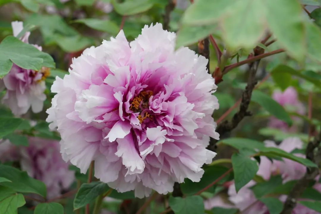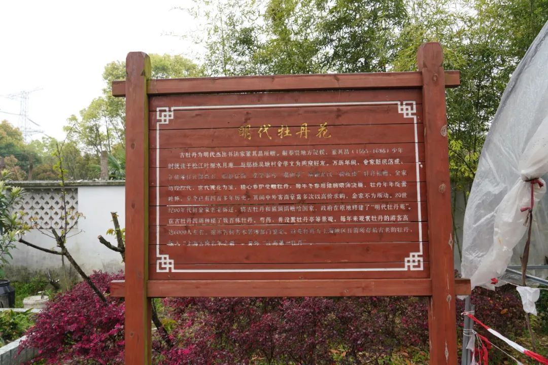 一份坚守 百年传承 上海市奉贤区南桥镇吴塘村的“粉妆楼”古牡丹早在多年前就远近闻名,每年吸引不少爱花人士前来一睹芳姿。说起这株古牡丹,金书林总是滔滔不绝,如数家珍。明万历年间,大书法家董其昌升任礼部尚书,正值同窗金学文新居落成,临赴任前亲笔手书匾额《瑞旭堂》,并赠送其两株牡丹贺新居落成,这株“粉妆楼”正是其中之一,至今足有494年。 “粉妆楼”如今虽枝繁叶茂,实则历经数次自然和人为的艰险,但都在金家的倾心守护下“化危为安”。在解放前夕,某英国公司曾派人来开价用十万大洋收购古牡丹,金家严词拒绝。上世纪五六十年代,多次有人上门高价求购,金家一律回绝。在守护过程中,由于乡村发展,宅基地要拆迁,这株“粉妆楼”也面临过自然的“绝境”。没有了宅院的庇护,每逢其开花之际,金书林发现不少花骨朵渐渐枯死,为此忧心忡忡。“房子是1980年拆迁的,然后这个老宅基就等于变成了荒地。每一年开花的时候,折花枝、折花骨朵,最后花开不出了。我想来想去,还是交给国家好。”1995年8月,金书林夫妻二人毅然将它连同董其昌题写的古匾无偿捐赠给国家,变“传家宝”为“传国宝”,更多的人得以加入到古牡丹的守护队伍之中,古牡丹也在接力守护的过程中,焕发出崭新的生命力。