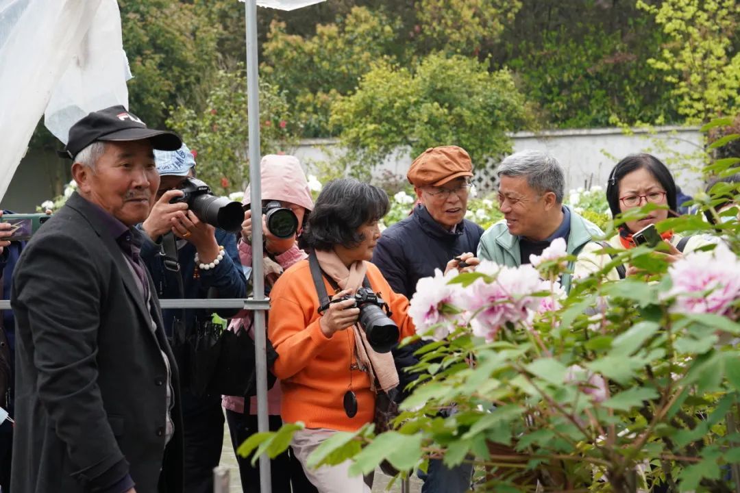 一种责任 不离不弃 寒来暑往,春去秋来,精心施肥、悉心呵护已经成为金书林的日常生活。这株古牡丹对于金书林来说,已经是生活的一部分,对古牡丹的热爱也早已融入了血脉之中。金书林已是耄耋之年,退休前是奉贤县邬桥农技站的会计,与养花毫无关系,他也从没有学过专业的花卉种植、园林园艺的专业知识,照顾古牡丹的“经验”一是靠祖辈上传下来的门道,二是靠自己的用心研究、全心呵护。 俗话说“谷雨三朝看牡丹”,2023年牡丹花期比往年要早一些,清明节前,已在春天里华丽绽放。“三朵、四朵、五朵……五十九、六十、六十一朵”,天光微亮之时,金书林和老伴儿的身影就已经出现在牡丹园里,开启了一天的养护工作,此刻他们正欣喜地一遍遍数着开放的花朵。“这株是粉牡丹,另一株绿牡丹搬到另一户人家后就死了,所以对粉牡丹我们一直不敢移动”,金书林即使上世纪80年代拆迁后已搬离老宅院,依然坚持与老伴儿“离村不离树”,他说,“我们因为有古牡丹而觉得特别自豪,因此一定要把它照顾得妥妥贴贴的。”金书林和老伴儿隔三差五就从镇上来到村里,朝夕与牡丹为伴,不曾有丝毫懈怠,这条一来一回两个多小时的陪伴路,他们已经风雨无阻地走了整整43年。