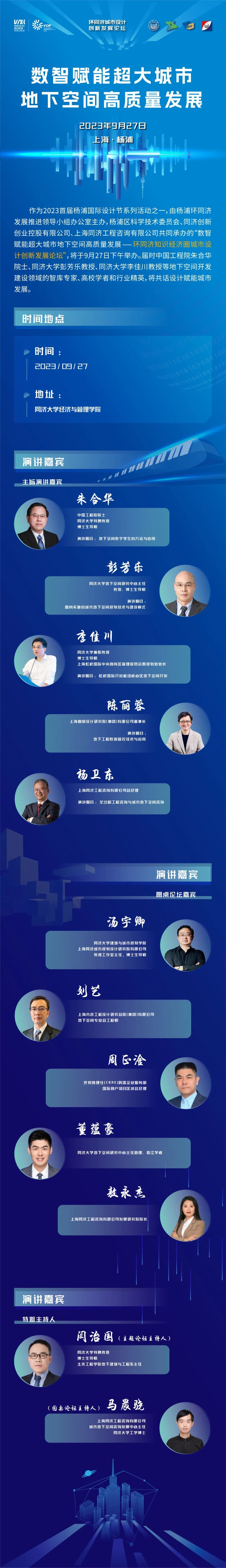 作为2023首届杨浦国际设计节系列活动之一,论坛学者汇聚,大咖云集。届时,中国工程院朱合华院士、同济大学彭芳乐教授、同济大学李佳川教授等地下空间开发建设领域的智库专家、高校学者和行业精英,将共话设计赋能城市发展。