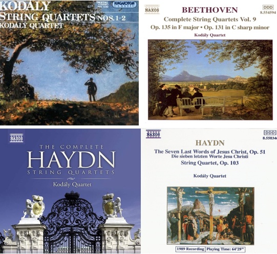 世界著名古典音乐厂牌拿索斯(Naxos)为柯达伊弦乐四重奏制作了大量录音专辑,其所录制的海顿、贝多芬和舒伯特四重奏全集都获得了全球业内外人士广泛的认可和赞赏。海顿室内乐作品专辑获得了业界最重要的古典音乐唱片专业评鉴刊物“企鹅唱片指南”给予的“三星带花”评价,它是全球古典唱片收藏玩家选购高品质古典唱片的权威参考。于1993年发行的室内乐专辑《海顿:弦乐四重奏作品 64》被权威杂志《古典唱片》评为最佳古典专辑。