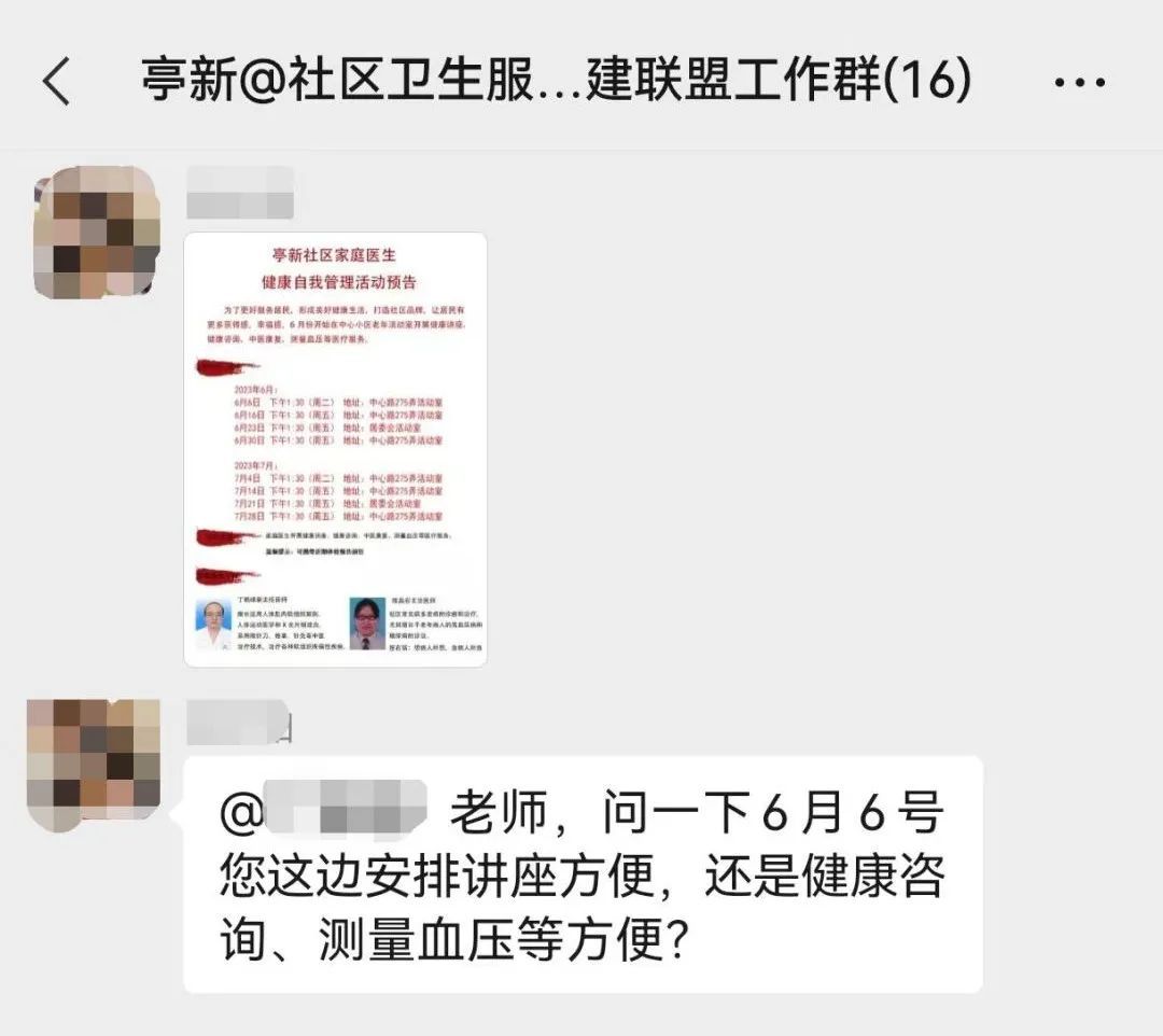 为了更好地服务社区居民,亭新居民区与16名居住在社区里的医护人员共同建立了一个社区医生微信群,让居民享受到更加便捷、高效的医疗服务。医护人员会在微信群内定期分享医疗健康知识、解答居民的疑问,并针对居民提供的病例进行专业分析,提供合理的治疗建议。