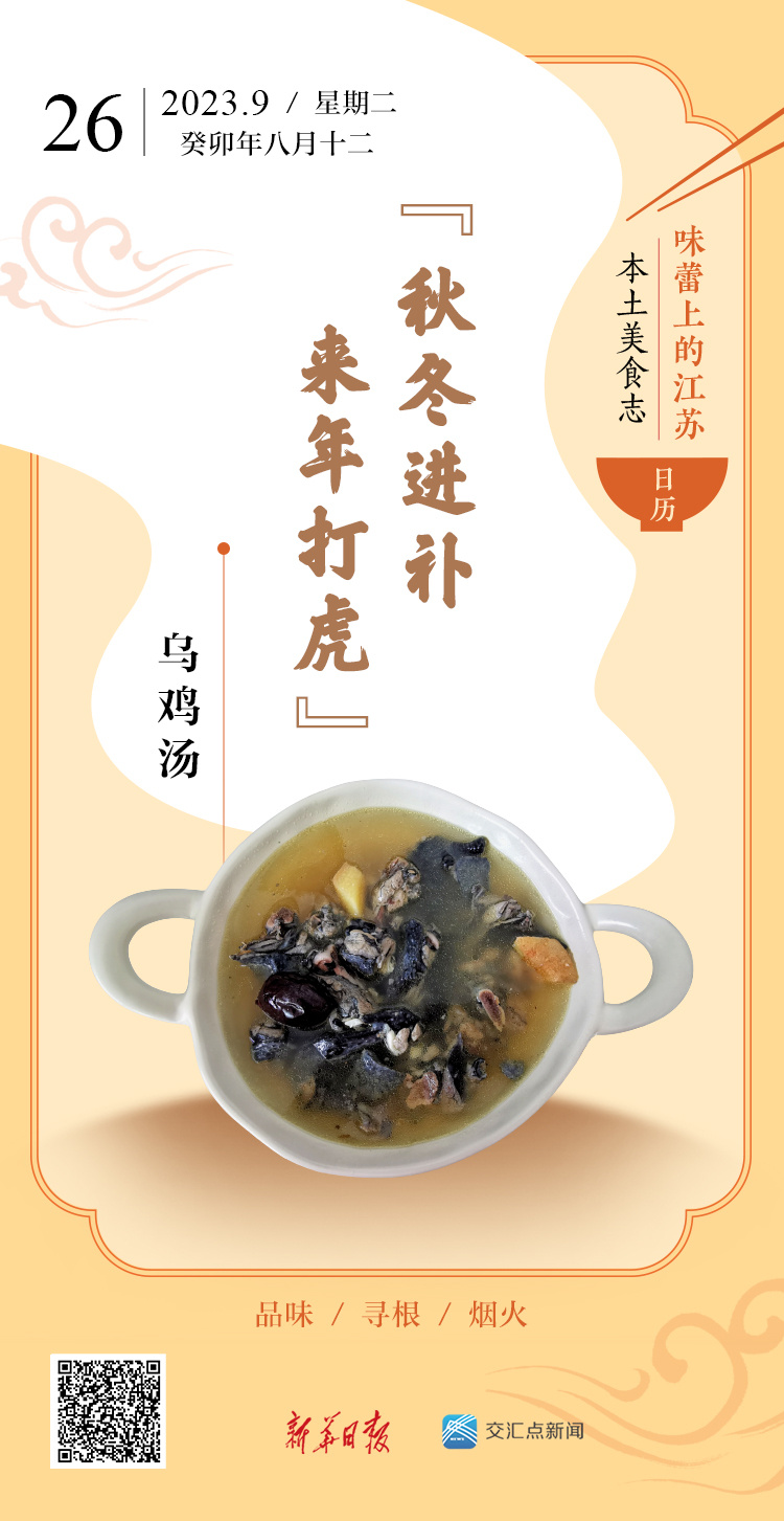 传统中医倡导“秋冬进补,来年打虎”,意思是秋冬善于进补,可为来年的身体打下坚实基础。食补可补精益气,秋风起,不少家庭选择适当多喝乌鸡汤。乌鸡汤的制作方法很简单,但要注意,不要把汤汁煮得太稠,以便保留乌鸡的养分。在煮汤前,也可将鸡肉放入淘米水中浸泡10至20分钟,去除鸡皮腥味,又让鸡肉更鲜嫩。