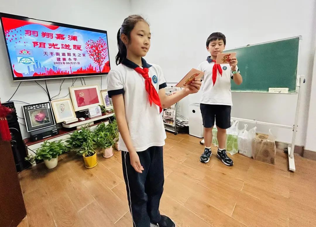 作为“家校社协同推进少先队社会化工作”示范点项目之一,此次活动也是嘉澜庭爱心义卖的“后续”。建襄小学大队辅导员秦益丽介绍说,当天来参加活动的孩子都是提前自愿报名,写下想要参与的理由,投入大队部飞飞信箱,“有三四十个小朋友报名,他们都很愿意参与到社会活动当中来,把这份爱心献给大家。”