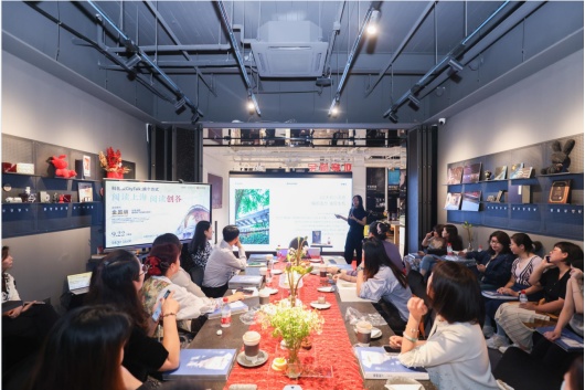 本次读书会场馆是园区企业宇宙奇迹生活艺术馆,其品牌总设计师和创始人郭晰纹,介绍了她的新书《不止设计》和背后的故事。“阅读不止是读书,也是读人、读事、读史、读诗、读生命、读空间、读时间,深刻的理解才能做出一流的设计。”——晰纹设计的理念。
