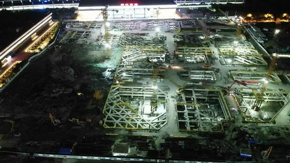 攻克巨量土方开挖难题后,建设方又面临大体积混凝土施工难题。“两个区域所需浇筑的混凝土在4万立方米左右,以一辆商砼运输车一次运输10立方米计算,共需要4000辆次,组织协调异常复杂。”项目相关负责人表示,他们将S1区和S4区细化为16个混凝土浇筑单元,实施现场指挥、驻站沟通、物资调配、安全监督、技术指导、质量控制、车辆调度、应急处置等多方面全方位全过程深度管理,在建设方连续昼夜奋战下,S1区和S4区分别顺利完成了混凝土浇筑3.3万立方米和7400立方米,确保了项目如期全面进入主体结构施工阶段。