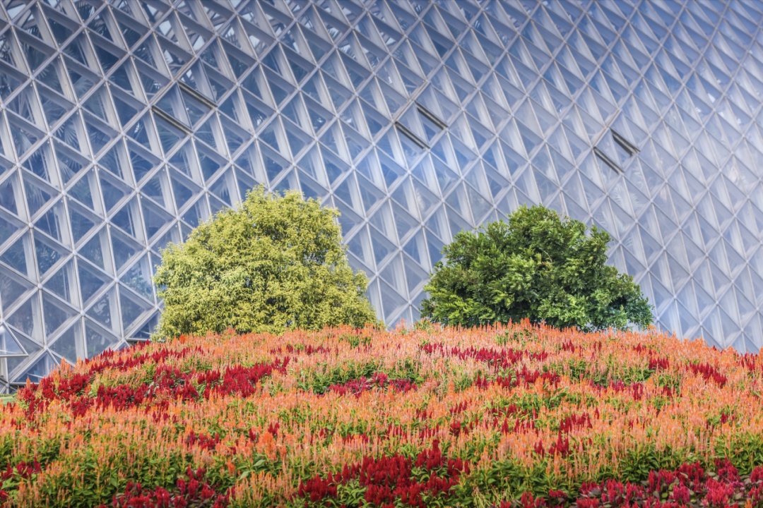 鸡冠花因其花序红色、扁平状,形似鸡冠而得名,享有“花中之禽”的美誉,是园林中著名的露地草本花卉之一。其花序顶生、显著,形状色彩多样,鲜艳明快,有较高的观赏价值。在橙与红激烈的色彩碰撞中,羽焰鸡冠花构成了一片独属于辰山植物园的浓厚热情的秋意。