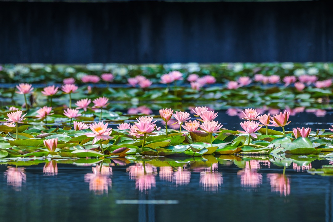 辰山植物园内默默生长的睡莲、轻盈游动的鱼儿、随波摇曳的水草,共同构成了一方“静谧和谐的水生世界”——水面下流转着生命的能量,水面上朵朵睡莲静婉绽放;雾气徐来,花影鱼跃,仙气袅袅。