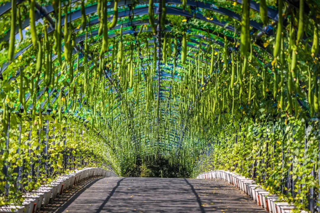 不同色彩的蔬菜和花卉搭配后,以花境的方式打造出一片硕果累累的的美妙田园。如果你想要短暂逃离城市的纷扰,体验一把“归园田居”的生活,那么秋日的辰山植物园,就是全家出游、感受闲情野趣最理想的目的地。