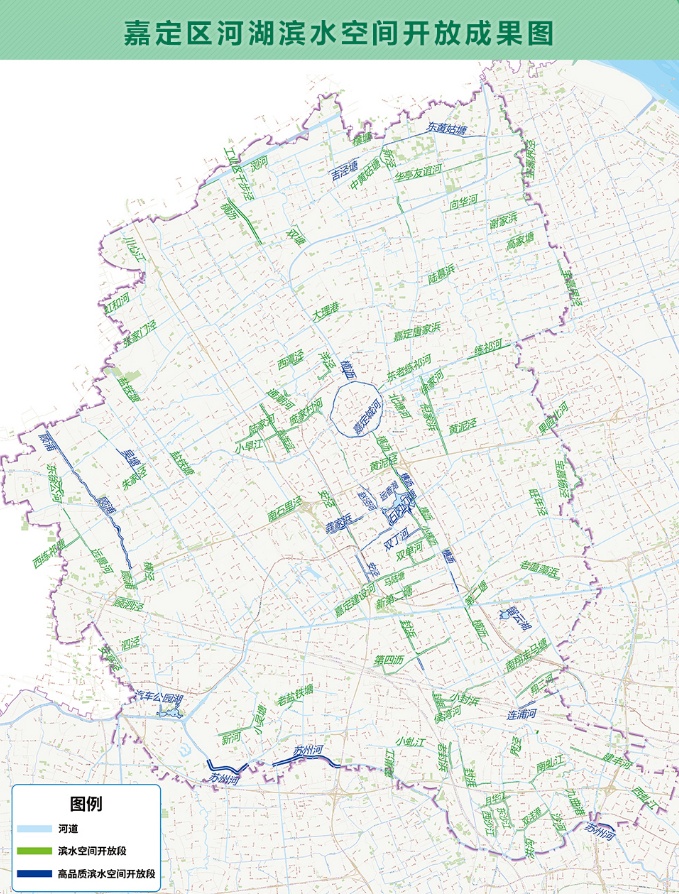 据统计,截至2022年底,嘉定全区镇管及以上河湖滨水空间开放长度221.15公里 ,涉及河湖82条(个);其中高品质滨水空间开放长度72.78公里,涉及河湖15条(个)。