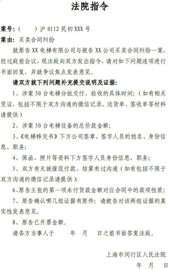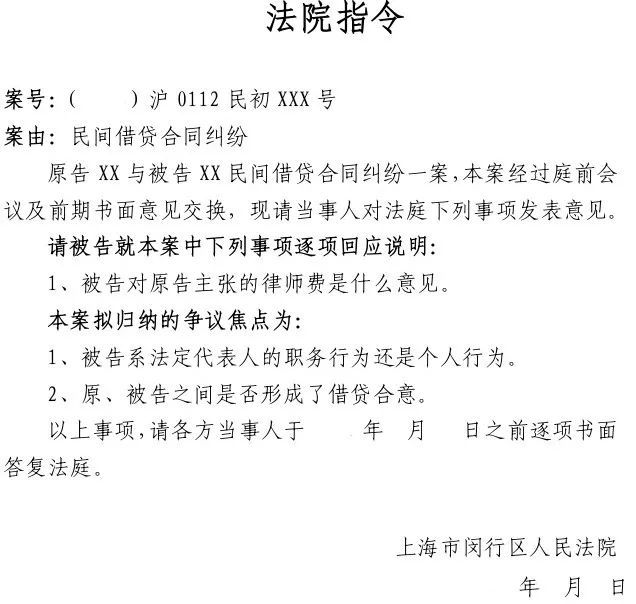 图为法院指令(闵行区人民法院版)