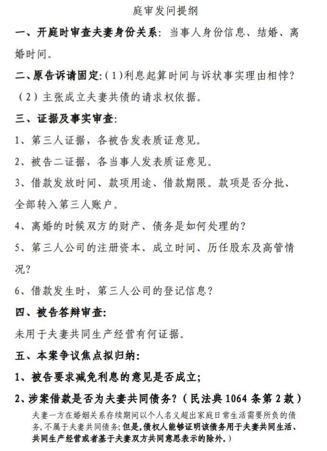通过庭前对于请求权、抗辩权的基础规范要件整理,分析出该案争议焦点在于涉案借款是否符合《民法典》第1064条第二款的规范要件,并在开庭审理时集中围绕争点审理,提高庭审效率。