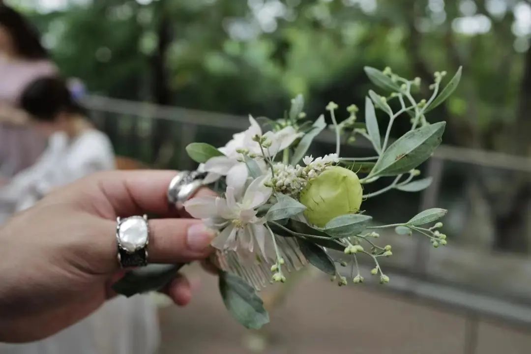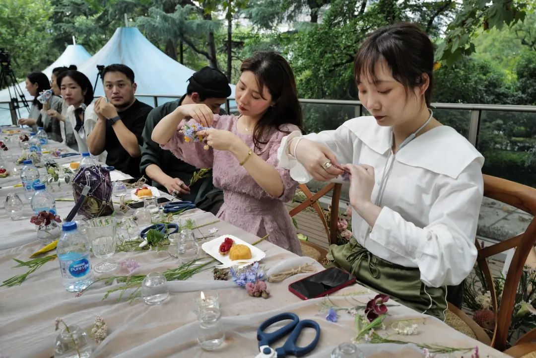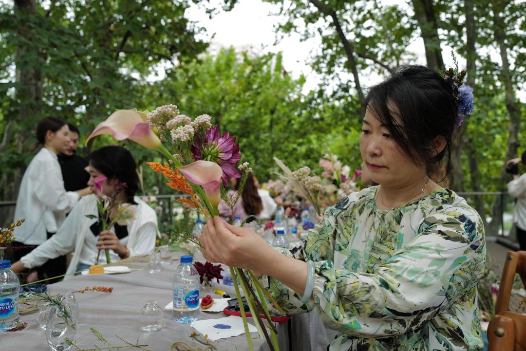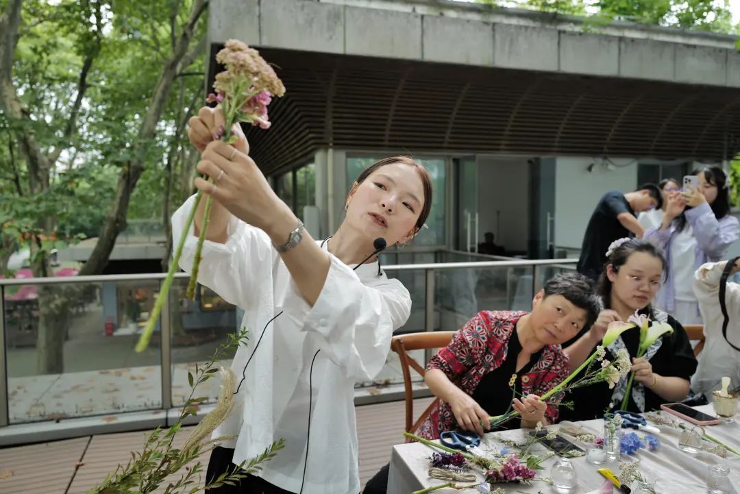 花与花如何配色?什么样的花艺造型能让人产生共鸣?花艺又如何应用到日常穿戴、生活中?现场,区绿化委员会办公室特意邀请了小红书上热门花艺师,教导大家用花诉情、用花叙事、用花创造,赋予平淡的生活更多美好。