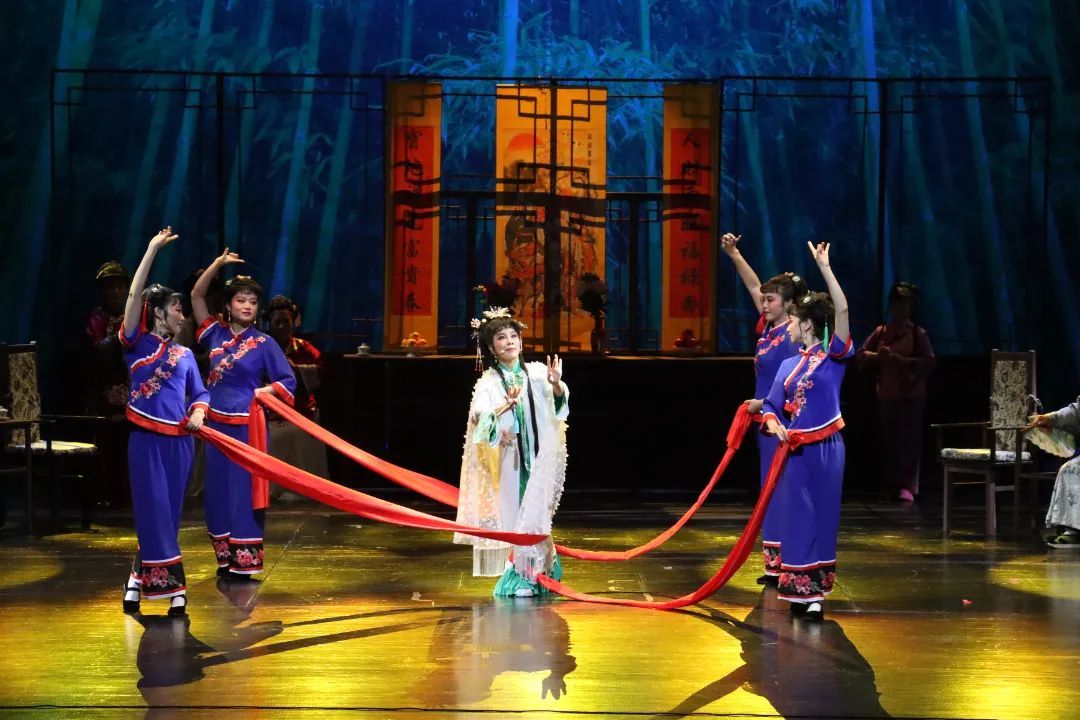 伴随着优美的沪剧唱腔和一幕幕精彩故事,车墩镇大型原创古装沪剧《丁娘子》今日(9月26日)在云间剧院大剧场迎来首演。