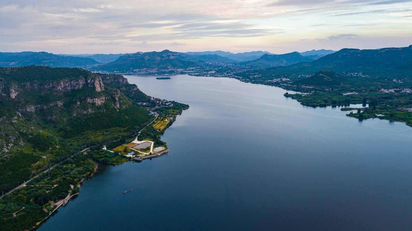 秋日的济南卧虎山水库,呈现一幅醉人的画卷。金乌西坠,天上的云由白渐红,湖水也泛起了彩色的光芒;水面上水鸟成群结队,自由自在地飞翔;岸边绿树摇曳,树下秋虫尽情歌唱。漫步岸边,感受到了秋天特有的韵味。