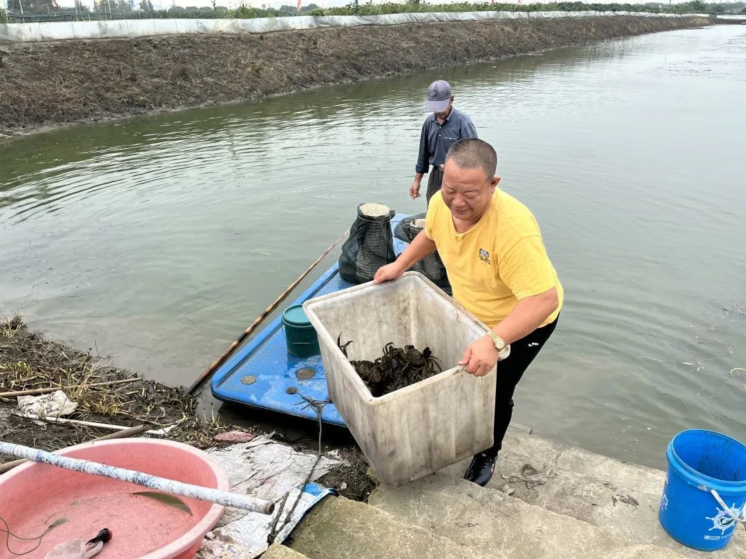 今天(9月26日)上午,青浦本地大闸蟹正式开捕!首日开渔,一大早捕捞船在螃蟹养殖基地整装待发,蟹农们忙碌地做好最后的开渔准备,检查船体情况、捕捞装备等。随着一篓篓大闸蟹收网,满网尽是青背、白肚、黄毛、金爪的大闸蟹,嘴里还不住地吐着泡泡,一派繁忙丰收的景象。