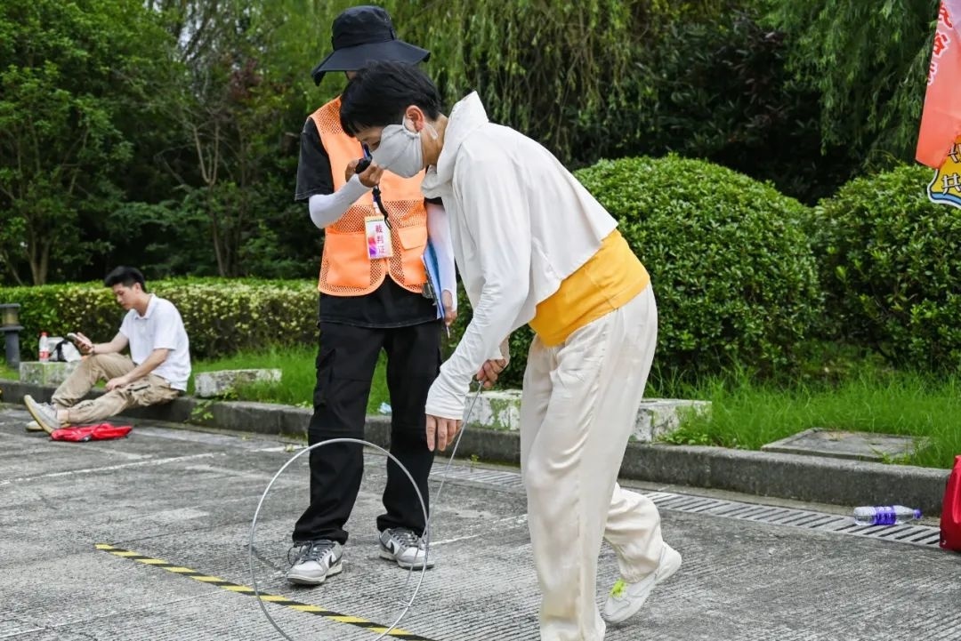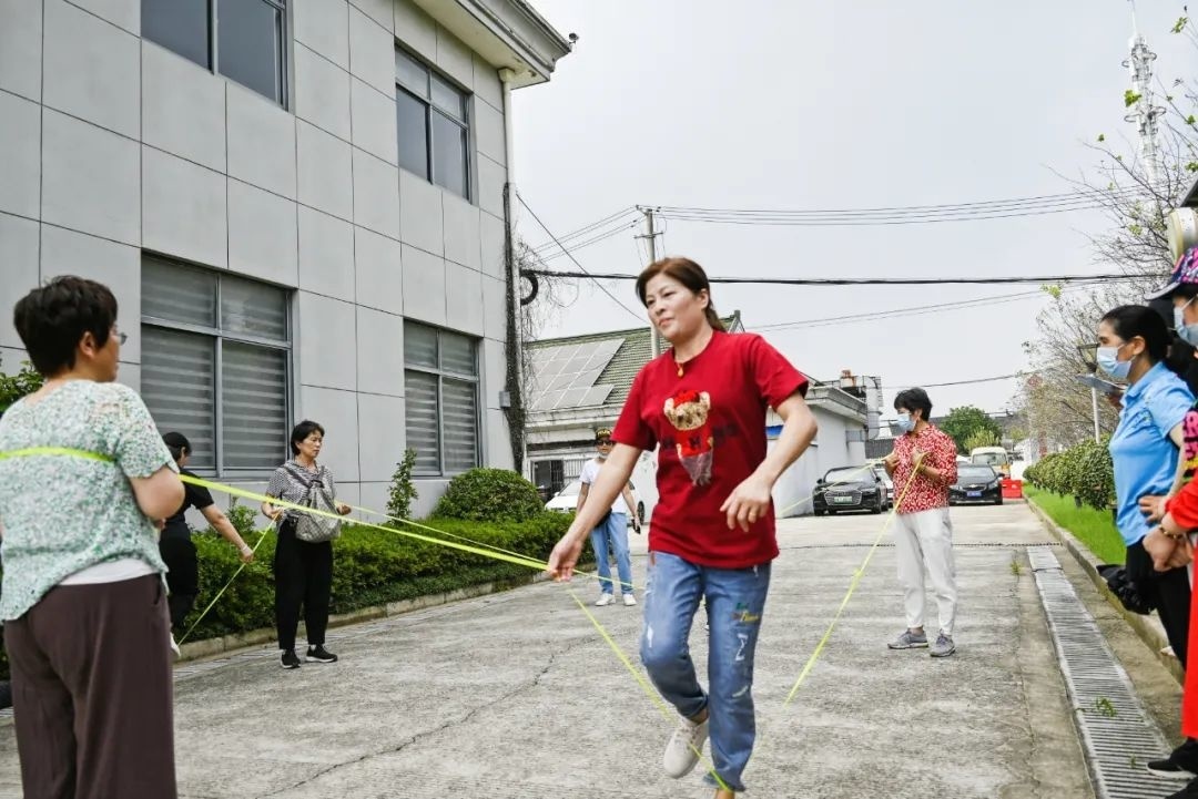 在跳筋子比赛现场,选手们体态轻盈,踩着节奏来回踏跳,充满弹性的皮筋也在选手们的相互合作中,变换着各种形状。时隔多年,再次玩起了小时候的游戏,让不少选手感慨万分。