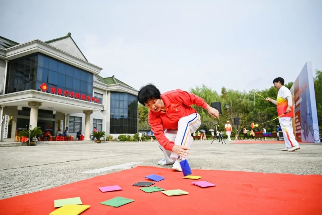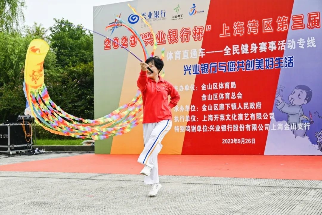 9月26日下午,2023年上海湾区第三届民俗运动会在金山区廊下镇勇敢村举行。跳筋子、抽陀子、滚圈子……这些昔日在上海弄堂风靡一时的“九子”民俗游戏,如今重新上演!来自10个街镇(高新区)的100名体育爱好者在赛场上拼搏竞技,展示高超技艺。