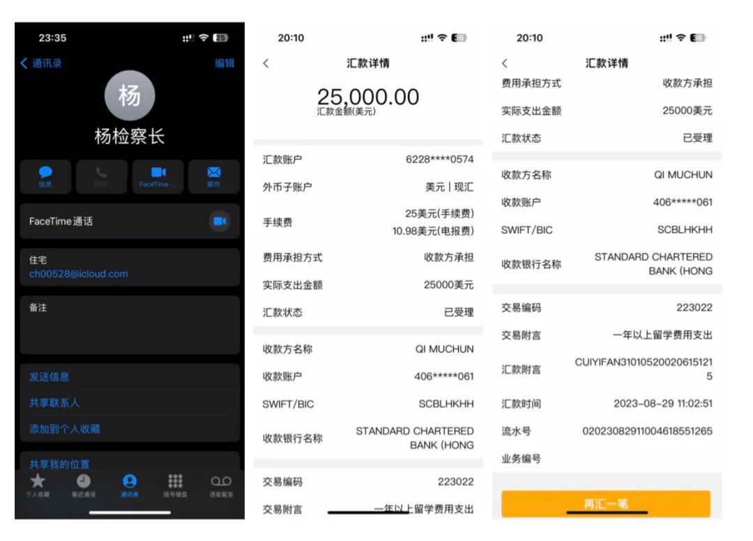 “我的账户境外汇款有限额。在发起第一笔汇款25000美元的境外汇款后,第二笔汇款24000美元受到系统限制。”小崔介绍道。