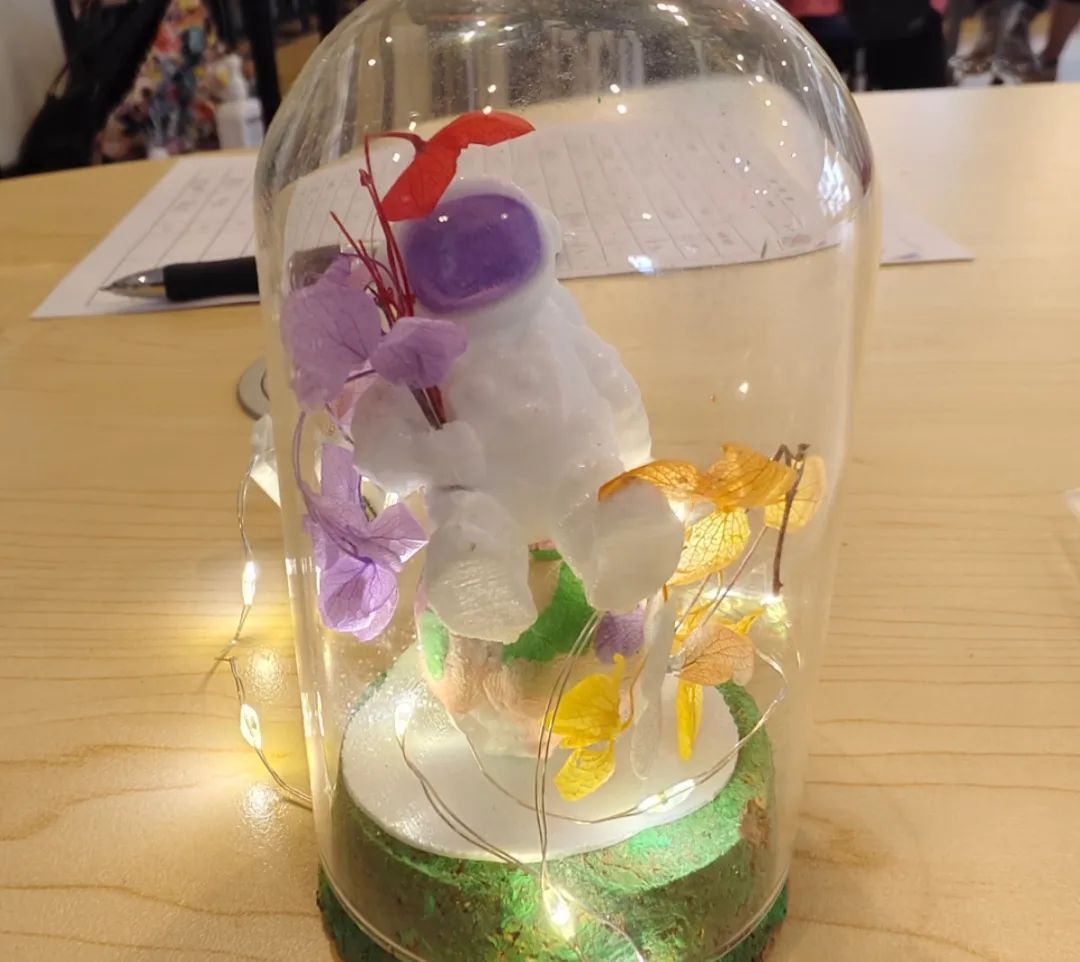 不仅小朋友们可以做手工,居民们也可以参与3D打印课程,了解前沿科技应用的同时,还可以把打印出的模型DIY成美观的小夜灯带回家。