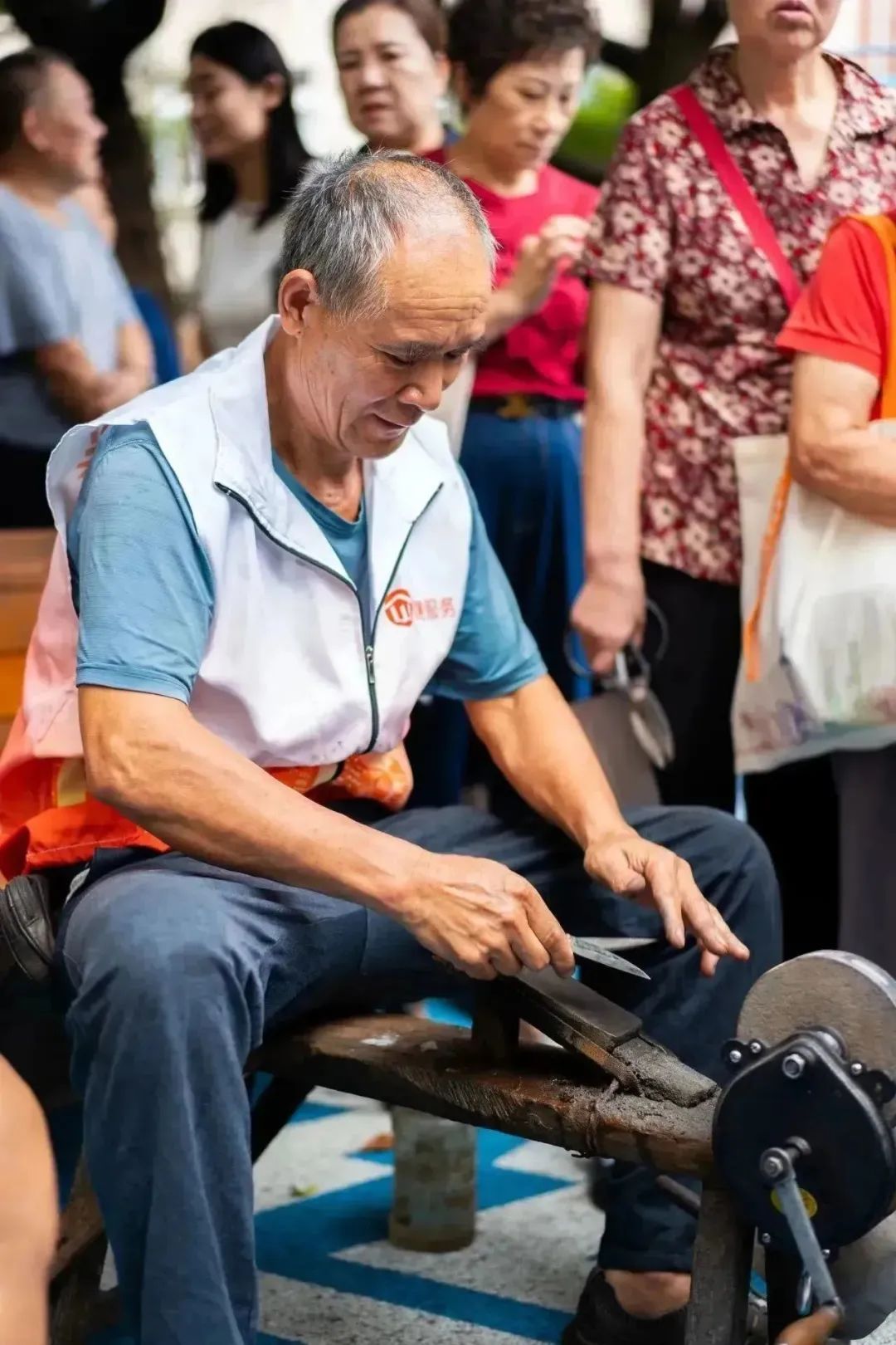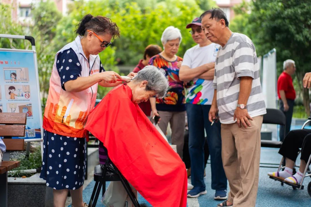 “我坐轮椅腿脚不好,大半年没剃过头了,这次真的是服务上门”“这里还有磨刀啊,多少年没见过了,我赶紧叫邻居一起来”“这双鞋我一直舍不得扔,可惜又没地方修,你们帮了我大忙了”……一早,虹口区曲阳路街道巴林小区中心花园热闹非常。