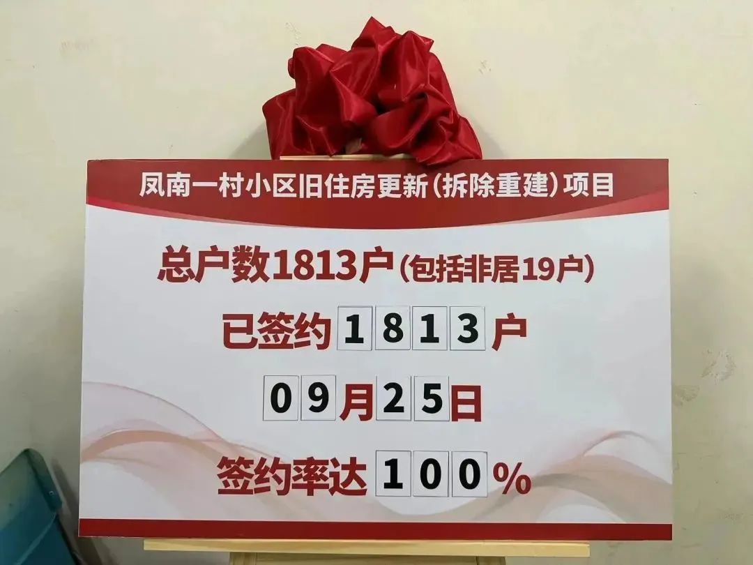 今年3月29日,区委、区政府下定决心,正式启动凤南一村拆除重建项目第一轮书面征询,得到了凤南老百姓的积极拥护和热烈欢迎。在市、区房管局等单位的鼎力支持和凤南居民的积极响应下,提前7天实现了第一轮同意率100%。8月28日,项目又迎来第二轮正式签约这一重要节点,当天签约率98.07%,实现项目签约首日高比例生效。