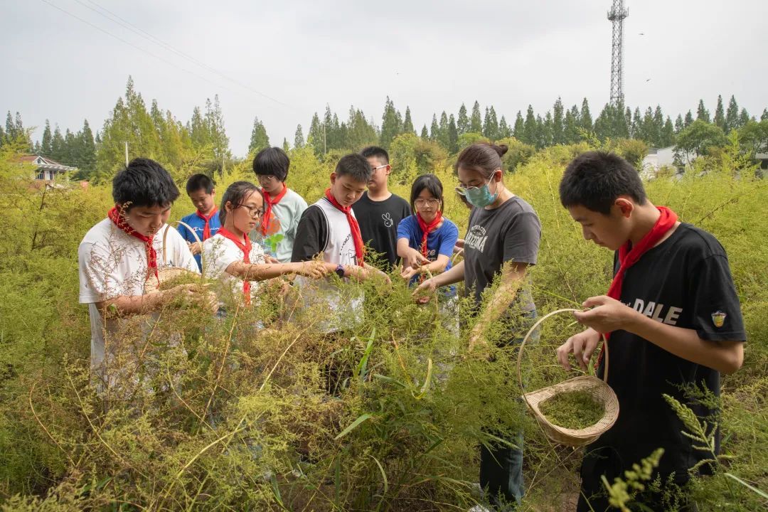 眼下正是苦草成熟采收的时节,一株株青色的苦草顶端开出微小的嫩黄花朵,散发出独特的香气。小朋友们在农户的指导下,挑选苦草嫩尖,轻轻一掐,很快就采满一篮。