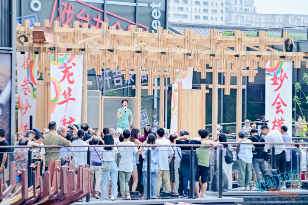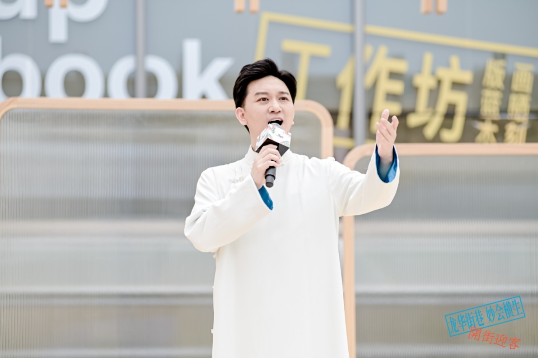 “江山如此多娇,引无数英雄竞折腰,数风流人物还看今朝。”对望千年古刹龙华寺,毗邻上海京剧院,龙华会在龙华文脉的滋养中生长。开街之际,著名京剧表演艺术家、上海京剧院国家一级演员、中国戏剧最高奖“梅花奖”获得者傅希如用一首自己作词的原创戏歌《青绿》,点亮了戏台,让市民们感受到戏歌中传统与创新的完美结合。开街期间,越剧《梁祝》选段、越剧《紫玉钗》选段、京剧《捉放曹》选段、京剧《霍小玉》选段等精彩的戏曲内容还将轮番在此上演,好戏不断。