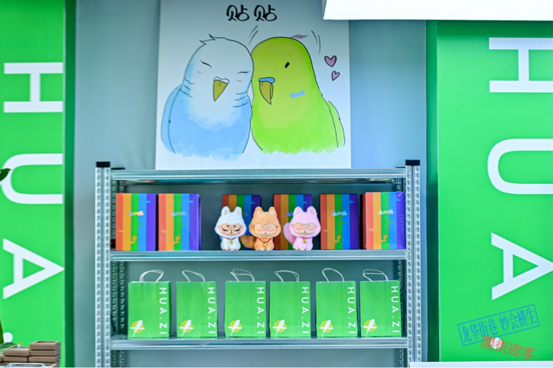 此外,龙华会邀请策展方“假杂志”和青年茶馆品牌“开吉茶馆”,带来了一处复合式策展空间——戏台书会,围绕艺术驻地展、艺术书主题展、工作坊、书刊亭,营造关于龙华和文化的特别场域,为龙华街巷的日常融入边喝茶边聊天的松弛感。更以项目自主孵化的原创IP“华子”,打造“华子的店”与环保品牌“piu”的联名合作周边,是别出心裁的创意,也是细微有趣的人文关怀。