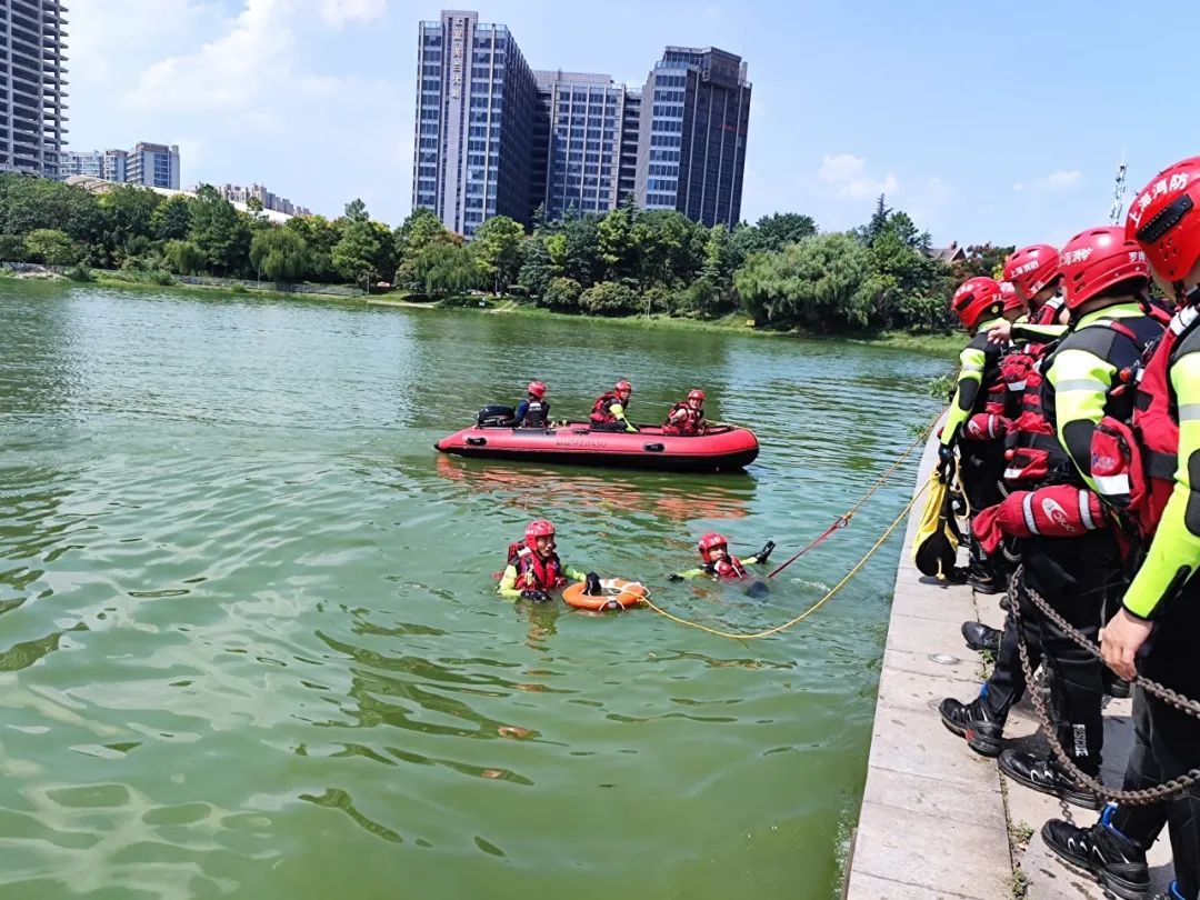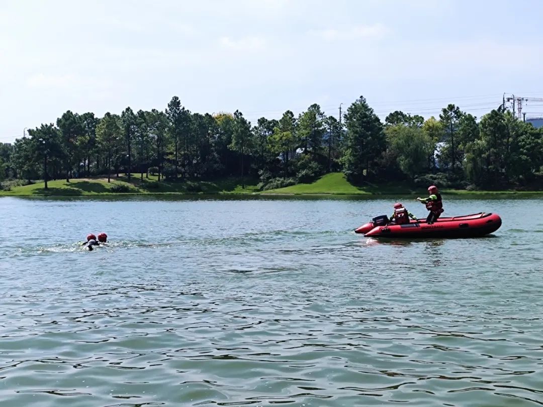 此次训练在开放水域美兰湖进行,突出“安全第一、科学组训、面向实战”的特点,重点围绕水域救援个人技术、团队技术和初战处置流程展开,提高指战员应对复杂情况时的救援能力。