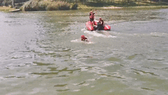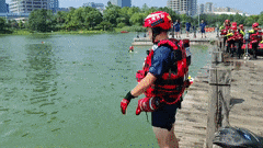 班组训练项目主要为跳河轻生救援展开程序和车辆落水救援展开程序。