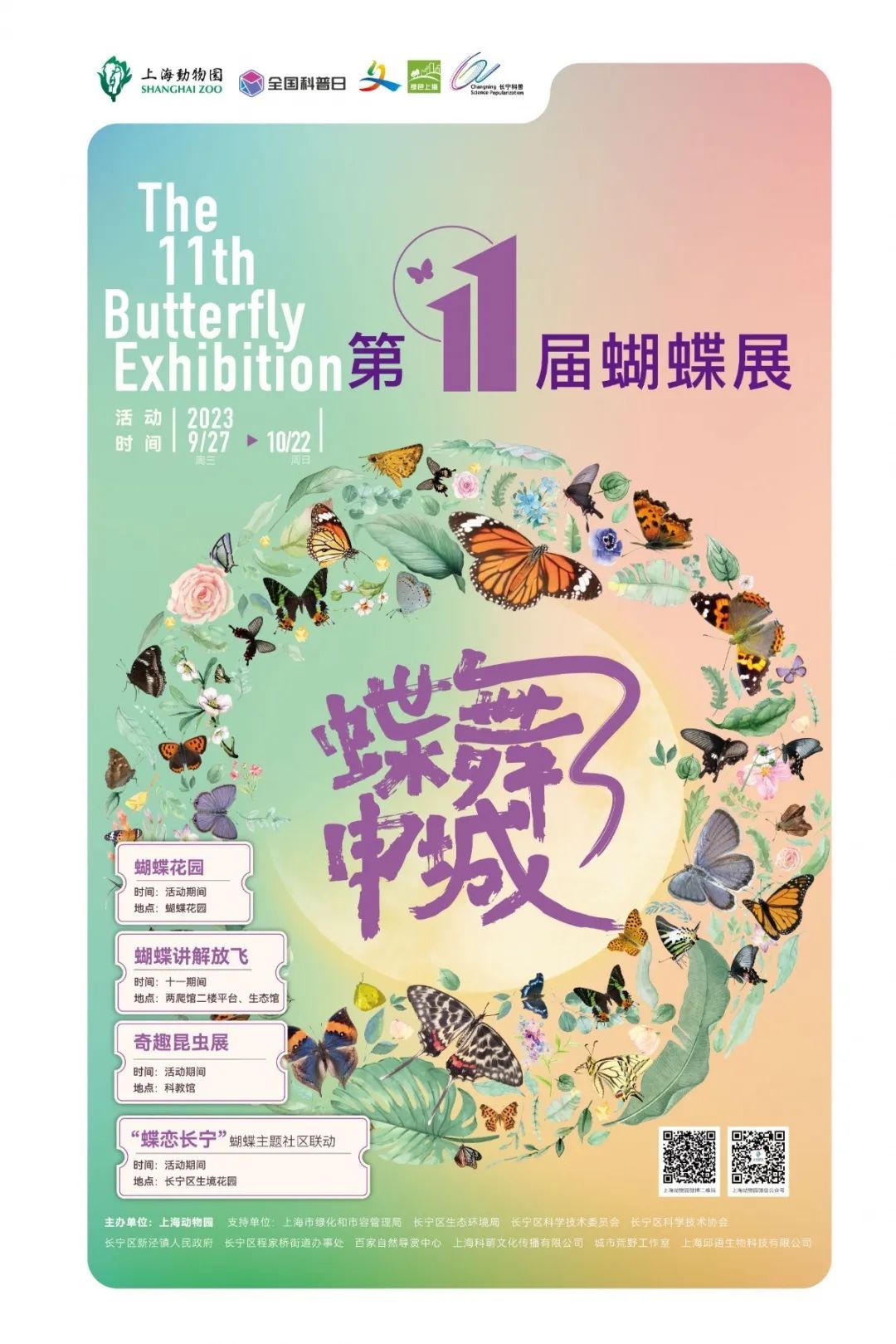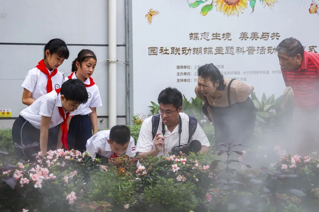 本届蝴蝶展,上海动物园还走出园外,与长宁区生态环境局共同举办“蝶恋生境 美美与共 园社联动蝴蝶主题科普活动”。经过前期指导,9月27日,上海动物园来到美丽的中泾蝴蝶主题生境花园,与长宁区生态环境局、长宁区程家桥街道、长宁区新泾镇镇共建自然生态科普联盟。