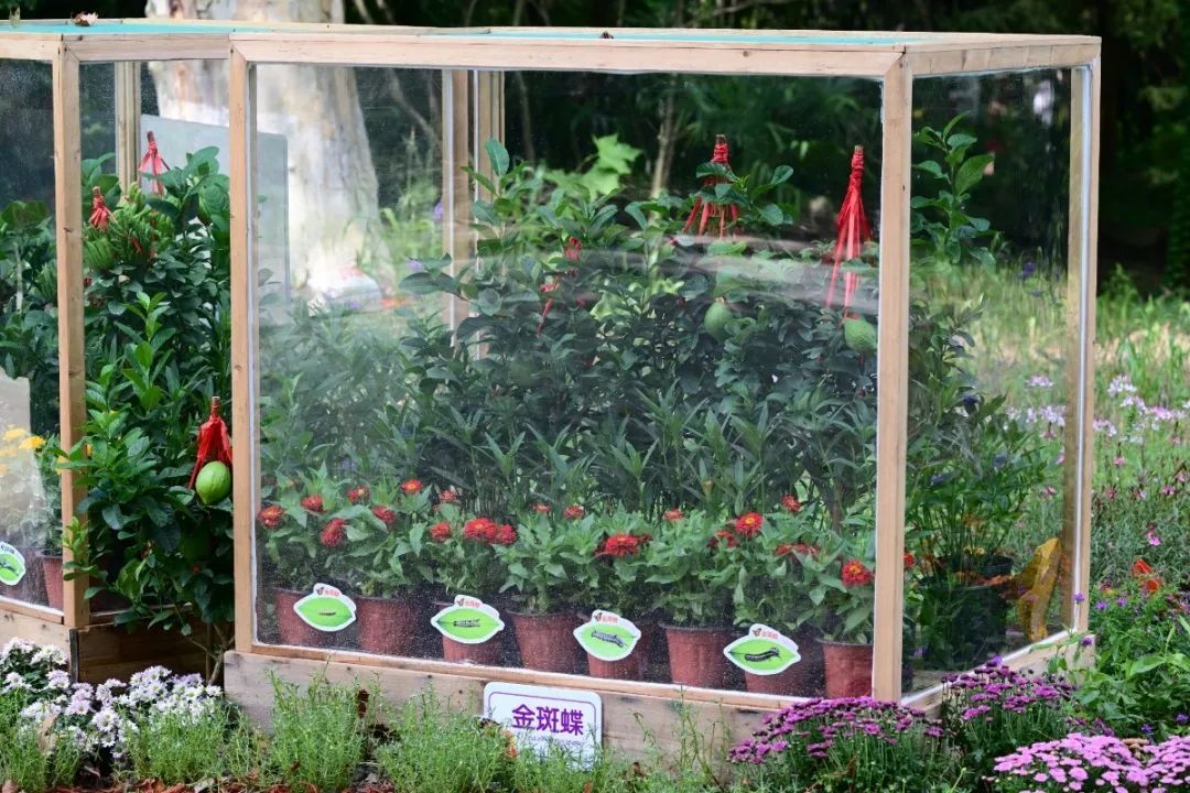 除了主会场生态馆,今年园方还在食草动物区附近打造了一个蝴蝶户外花园,选取上海本土蝴蝶需要的蜜源植物和寄主植物进行种植和布置,吸引本地野生蝶类栖息繁殖,打造上海本土秋季蝶类齐欢的生态化展示效果,为大家呈现一个别样的蝴蝶观赏方式。还有玉带凤蝶和金斑蝶幼虫展示,猜猜这些柠檬、佛手和马利筋都是哪位毛毛虫宝宝青睐的植物呢?