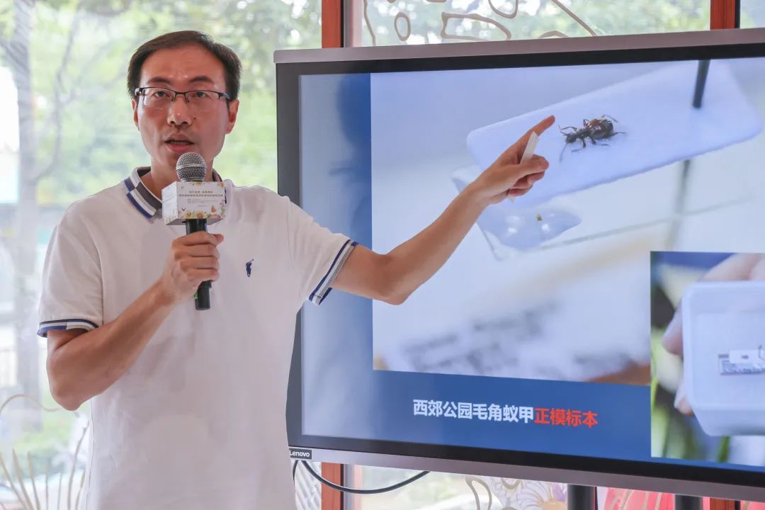 参与活动的学生和社区居民们变身“虫虫大侦探”,在科普老师的带领下探索身边的昆虫世界。