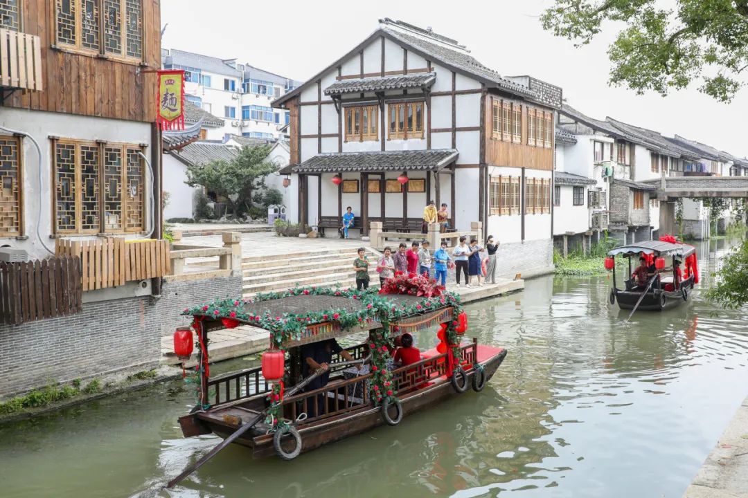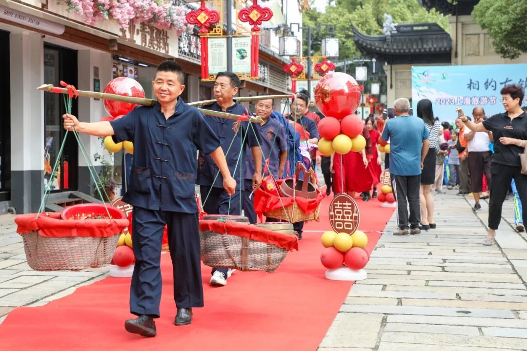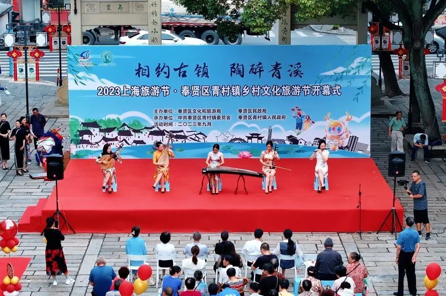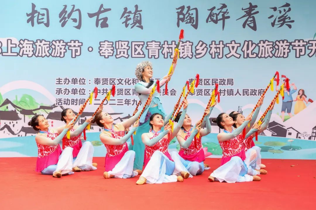 领略文化的艺术魅力,观赏老街的人文胜景,民乐演奏吹响号角,美丽乡村筑起特色风景线…… 一张由“乡村文化旅游”打造的新名片,正在奉贤区青村镇精彩亮相。 9月27日上午,2023年第34届上海旅游节(奉贤分会场)系列活动之“乡约古镇·桃醉青溪”青村镇乡村文化旅游节在青溪老街盛大开幕! 开幕式现场直击 伴随着居民们时不时的赞赏声,“乡约古镇·桃醉青溪”青村镇乡村文化旅游节正式开幕! 五拾里、青溪十五·半移堂2家民宿加入青溪民宿联盟。活动现场为“青溪”民宿联盟授牌。 \ 颁发证书 / 青村镇东乡传统婚俗和青村港民间食俗2个项目入选第八批奉贤区非物质文化遗产项目代表性项目。活动现场为代表性传承人颁发证书。 \剪纸作品《水韵青溪》赠予仪式 / 青村镇剪纸达人倪海英以青村老街为原型,用2个月时间创作了剪纸作品《水韵青溪》。活动现场为青溪老街游客服务中心赠送剪纸作品。 开幕式上,民乐《喜洋洋》用古色古香的传统乐器,带各位观众进入了老街的清幽意境。打莲湘舞蹈《薪传》将传统非遗文化与现代舞蹈技艺完美结合,精彩的文艺演出充分展示了青村镇浓厚的文化底蕴。 开幕后,举行了旅游节系列活动之“以水为媒结良缘”水上婚嫁民俗活动。三对东乡传统婚俗的演绎者将传统婚俗再现,进一步宣传非遗传统文化。 “心莲心”见证喜悦 “老捌样”佳肴赠送 交杯酒”互换情谊 “水乡婚礼”喜船出征 自2020年以来,青村镇乡村文化旅游节已经成功举办了四届,一直以来深受市民游客的喜爱。今年乡村旅游节期间,除“以水为媒结良缘”水上婚嫁民俗活动外,我们还将举办“以乐为赞献祖国”露营音乐会、“伽人相约悦身心”千人瑜伽大展示、“以耕为引庆丰收”趣味农耕赛、“以球逐梦展英姿”村超友谊赛等集文化、旅游、休闲、运动于一身的六大主题活动,集中展示青村秀美风光、乡土人情、民风民俗和特色产业。活动将从即日起持续到10月底。 小编诚邀广大市民游客走进青村,到自然乡野中来、到民俗体验中去!