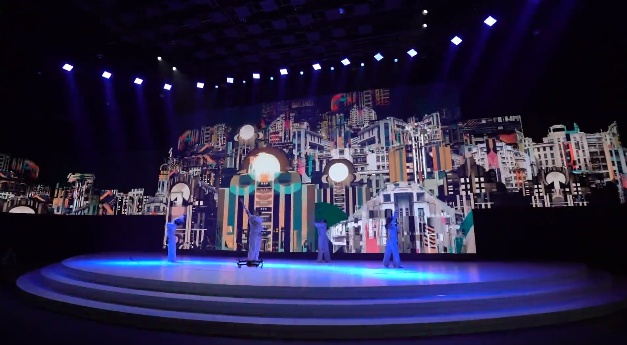 大会开幕新媒体演出《化》由同济大学设计创意学院声音实验室团队主创,联合上海戏剧学院提供多媒体表演,呈现内容从日常物件到社会图景、从科技前沿到自然生态,以充满诗意的表达演绎了设计在城市文化塑造过程中贡献的力量,并展望了智能时代设计的进化蜕变。