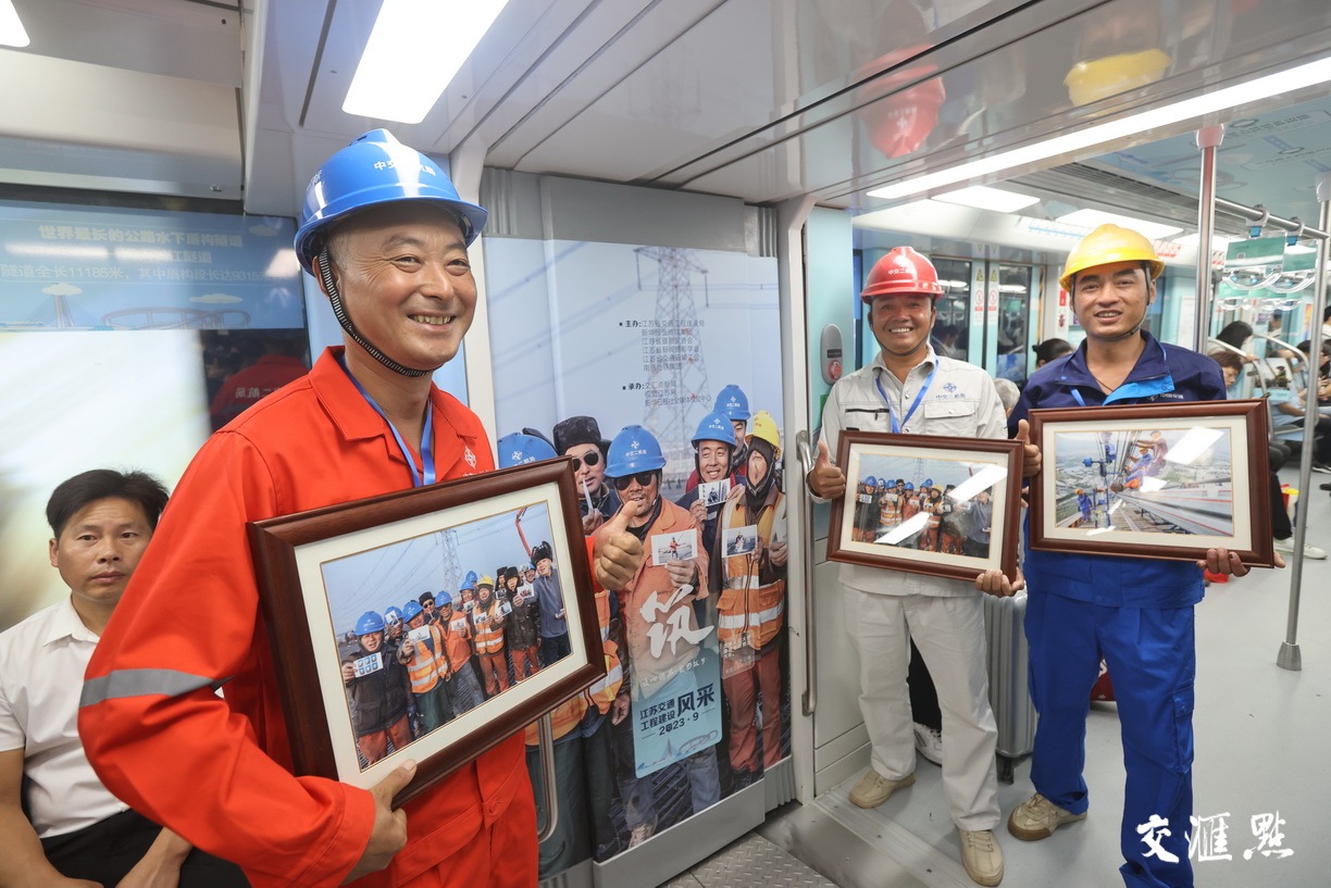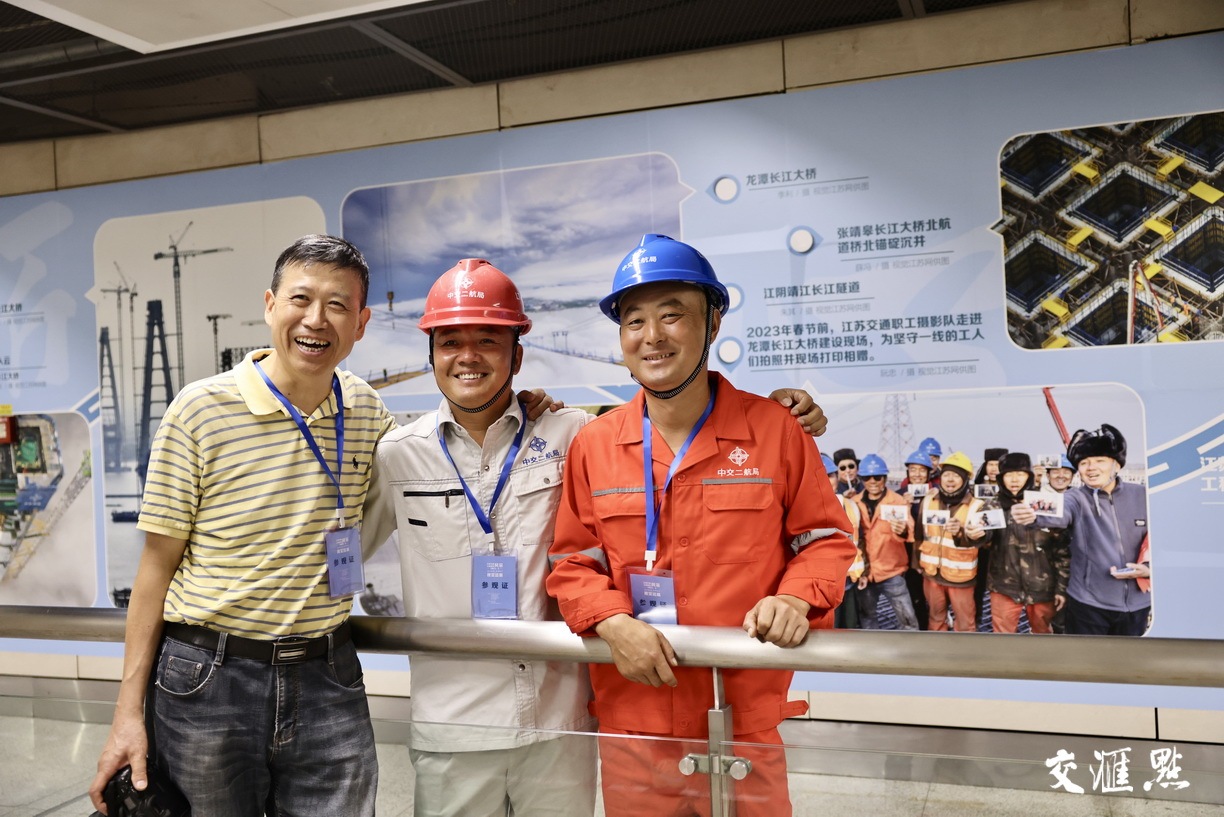 当天,四位来自龙潭长江大桥建设一线的工人也被邀请到了现场,他们拿着摄影师在工地现场抓拍的精彩照片走进地铁车厢,看着自己的笑容在交通设施里展示,第一次从重点工程幕后来到了交通运营一线,让他们倍感自豪和兴奋。