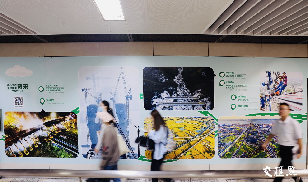 一幅幅精美、生动的江苏交通工程建设图片亮相南京地铁鼓楼站。