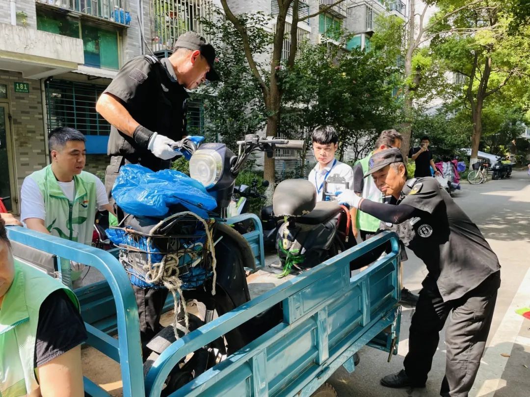 整治中,志愿者们对小区内乱摆放的非机动车重新整理摆放,去除违规设置的充电线,将影响停车空间的杂物和垃圾清理干净,让原本堵塞拥挤的小区门栋口“焕新颜”,同时也去除了许多安全隐患,让居民们拥有更加安全开阔的生活空间。