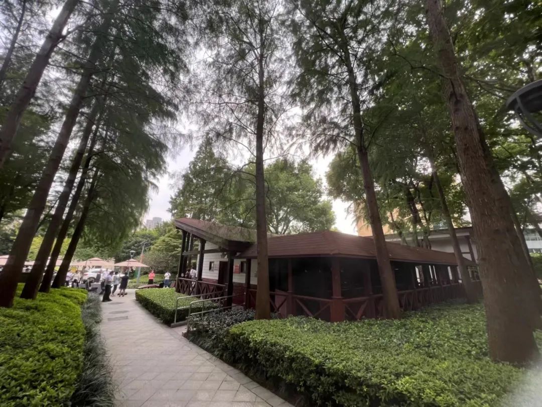 延虹绿地中心位置的木屋建筑