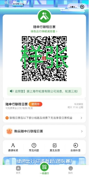 若您未在随申行注册、实名、签约及授权,需要完成上述操作后随申行联程日票方可展码使用。