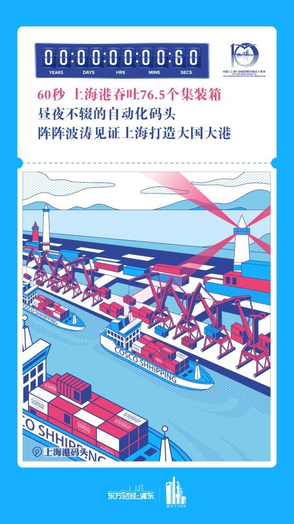 新媒体作品《自贸十年·每一帧都是故事》以时间为轴,从最小的飞秒时间单位,到上海自贸区成立10周年,从制度创新到寻常生活,每分每秒都展现出上海自贸区十年来的实践成就。