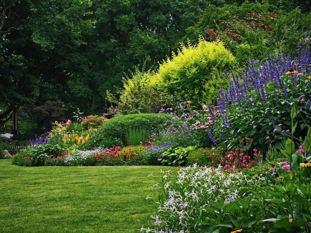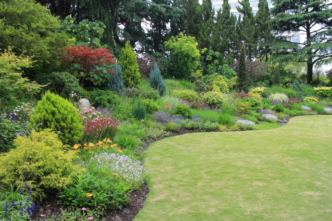 以六道木、花叶接骨木、蓝冰柏、金钱枫、穗花牡荆、红花檵木、金钱柏、紫薇、羽毛枫、小丑火棘等苗木作为骨架,配以色彩缤纷、高低错落的宿根观花植物,如:芳香万寿菊、蒲棒菊、柳叶白菀、樱桃红鼠尾草、火炬花‘木瓜棒冰’松果菊‘盛绘’、福禄考‘面包师’、千叶蓍‘盛芳’、紫叶千鸟花‘红蝴蝶’等。