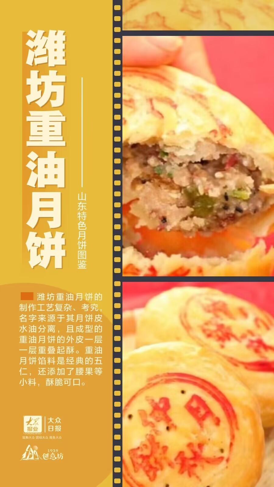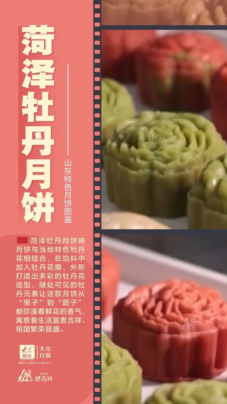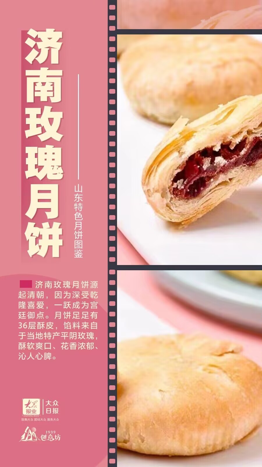 与我们耳熟能详的五仁、枣泥、椰蓉月饼不同,在山东,还有着更多具有地方特色的月饼——菏泽的牡丹月饼、德州的扒鸡月饼、聊城的阿胶月饼、济南的把子肉月饼……