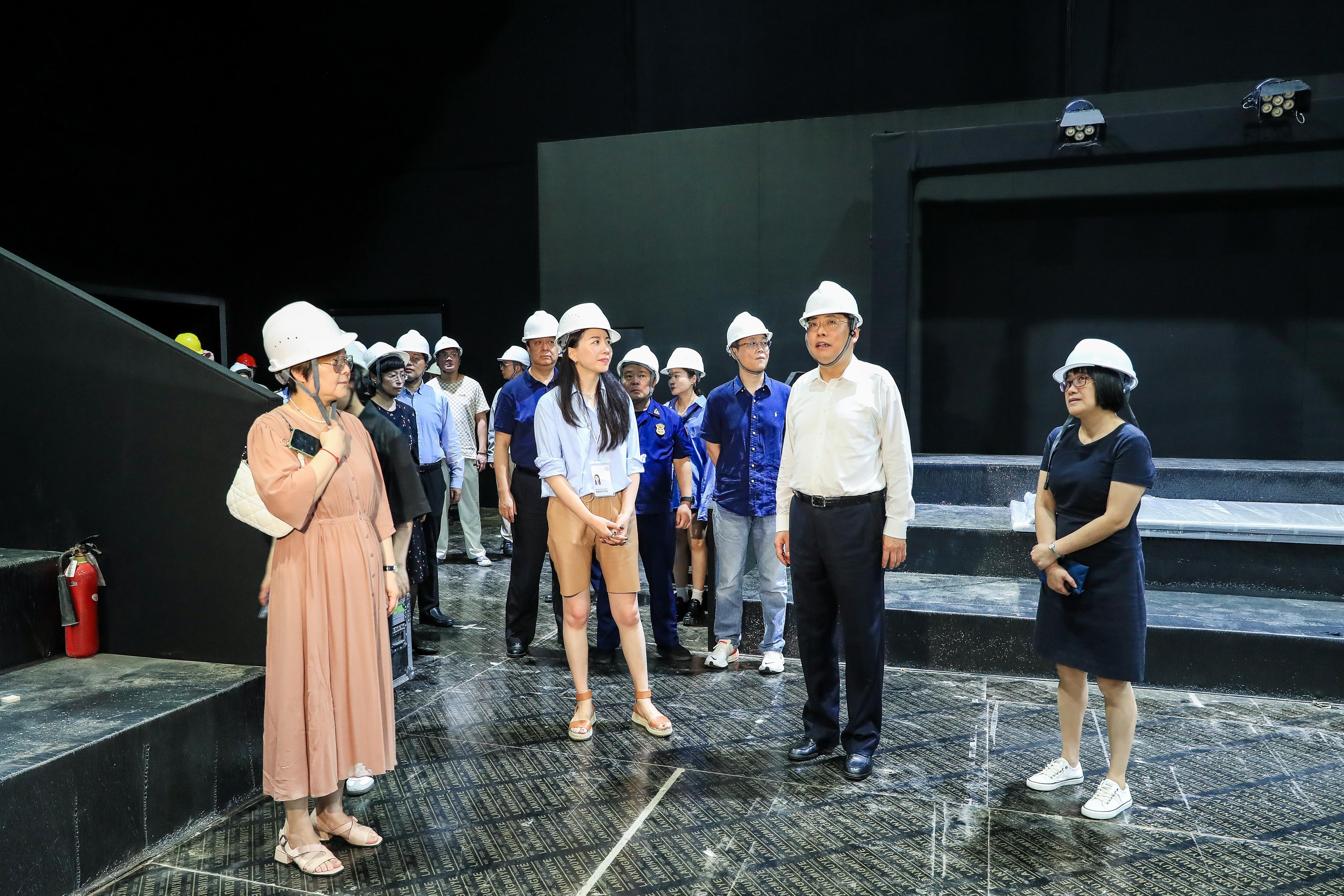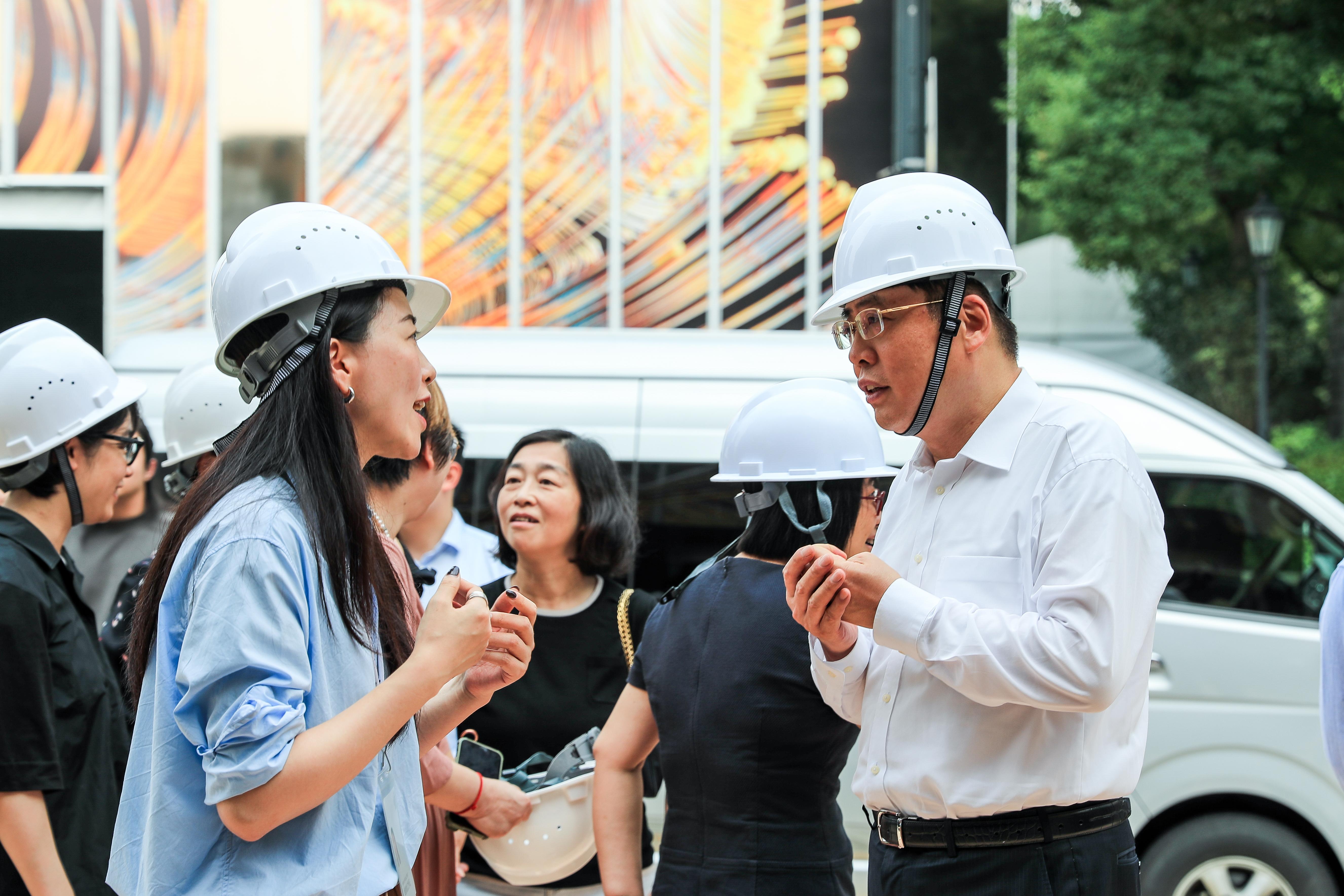 在位于新天地太平湖公园的上海时装周作品发布场馆,杲云察看2024春夏上海时装周场地搭建安全工作,听取准备工作情况汇报。