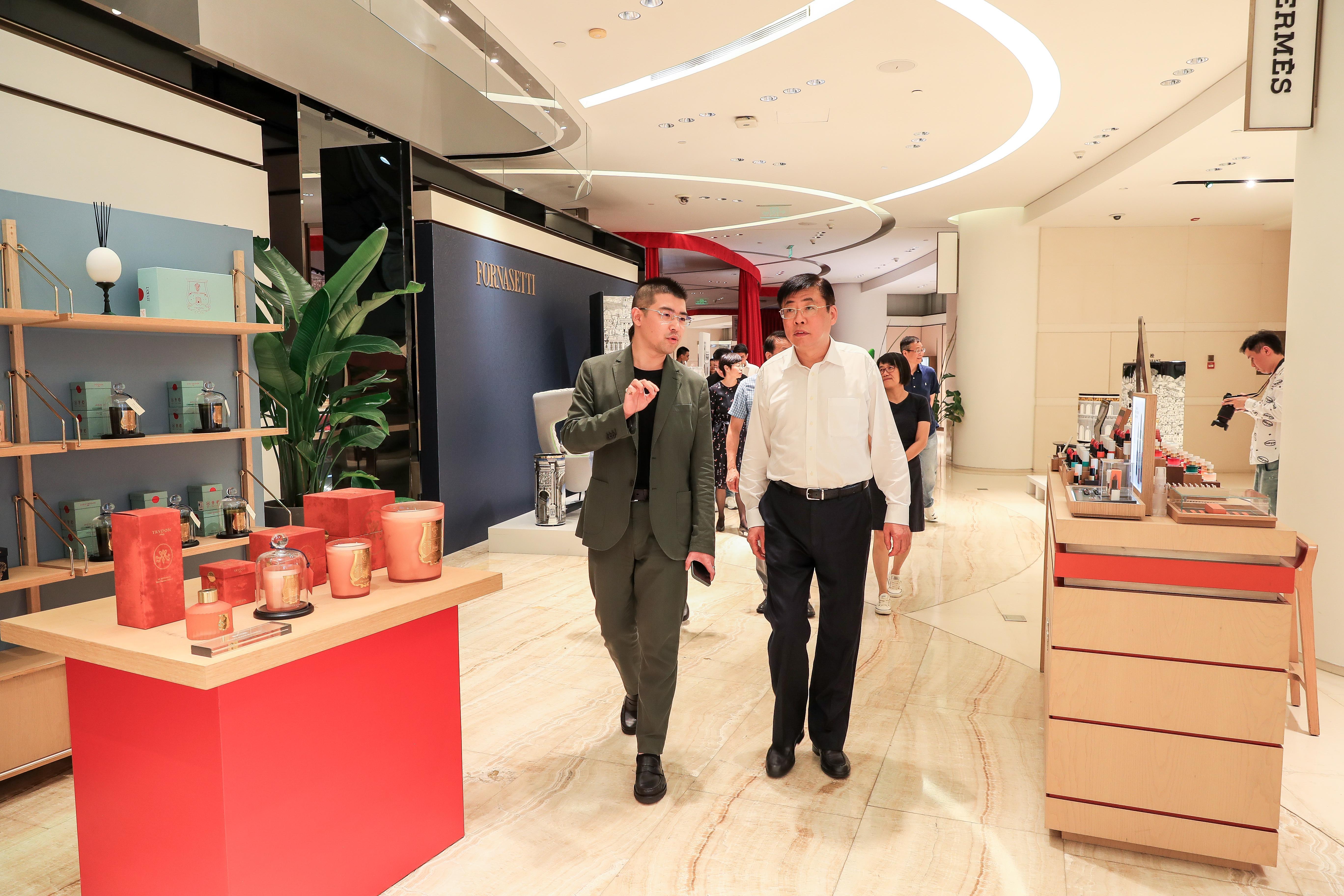 在大上海时代广场,区领导察看节日期间相关区域商业活动和安全工作情况,听取商场运营的情况汇报。