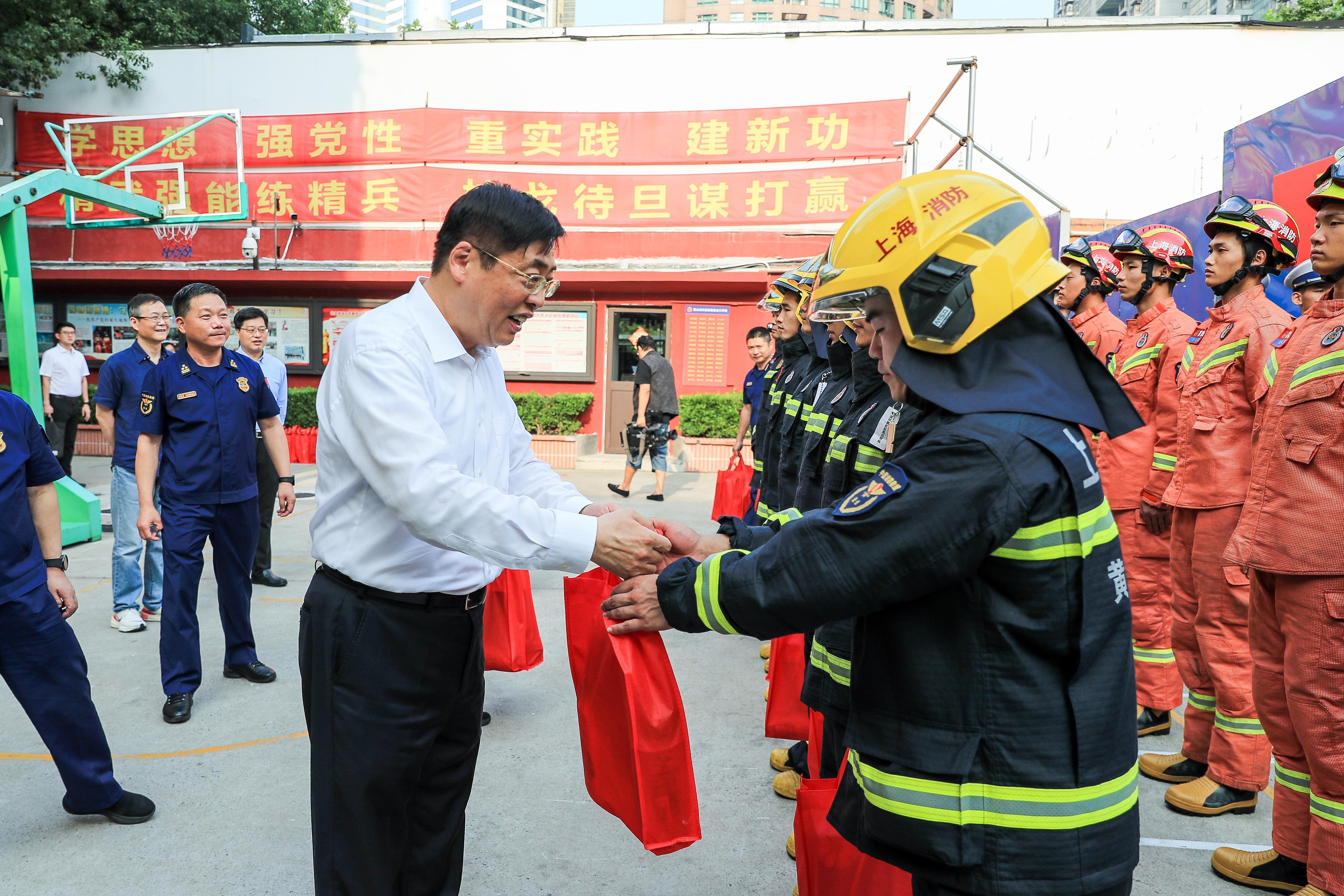 在嵩山消防救援站,区领导听取中秋国庆期间防火安全和消防保障工作的情况汇报,亲切慰问坚守岗位的一线消防指战员。