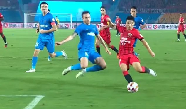 42分32秒,奥斯卡带球突入禁区后传球,武磊突破防守队员后尝试射门。